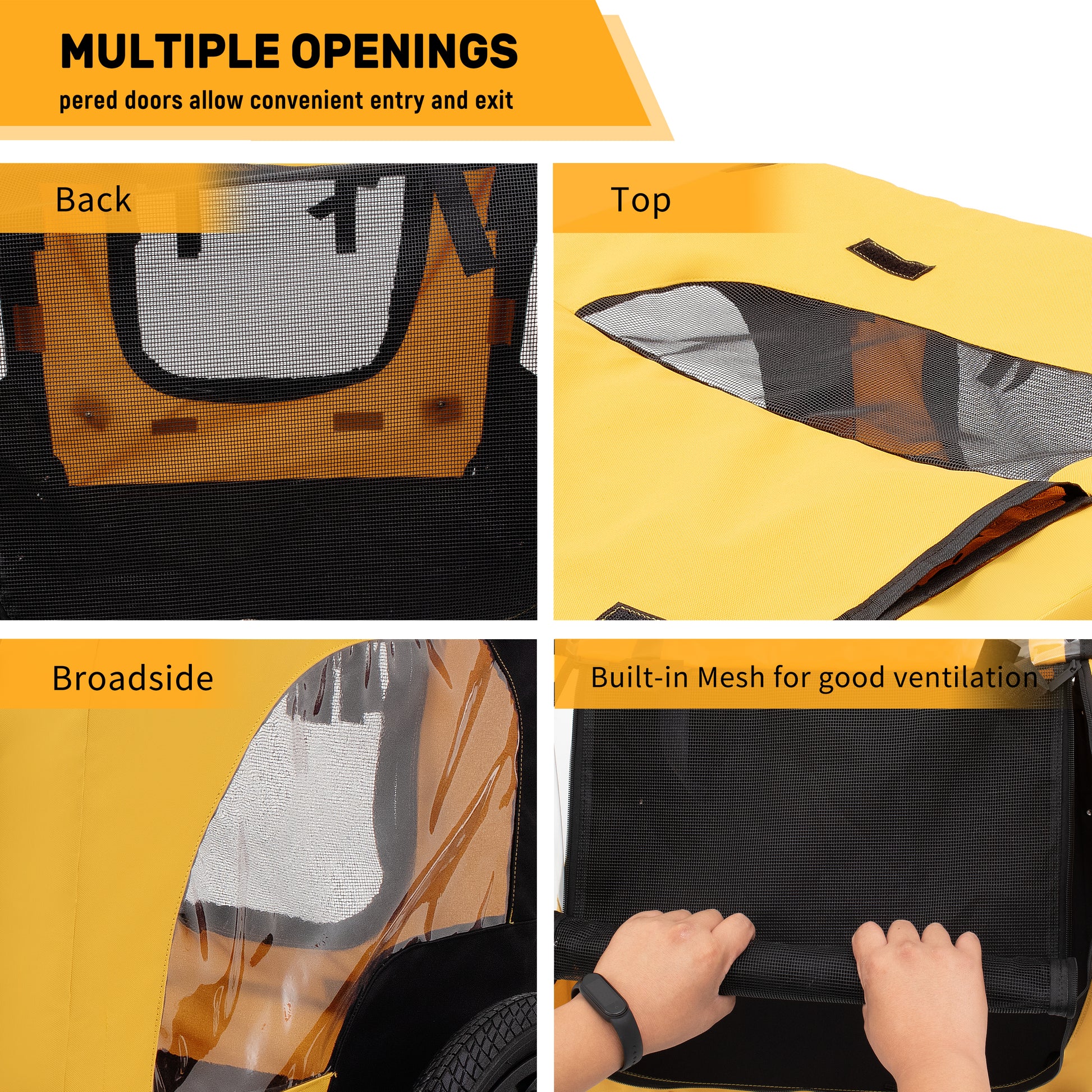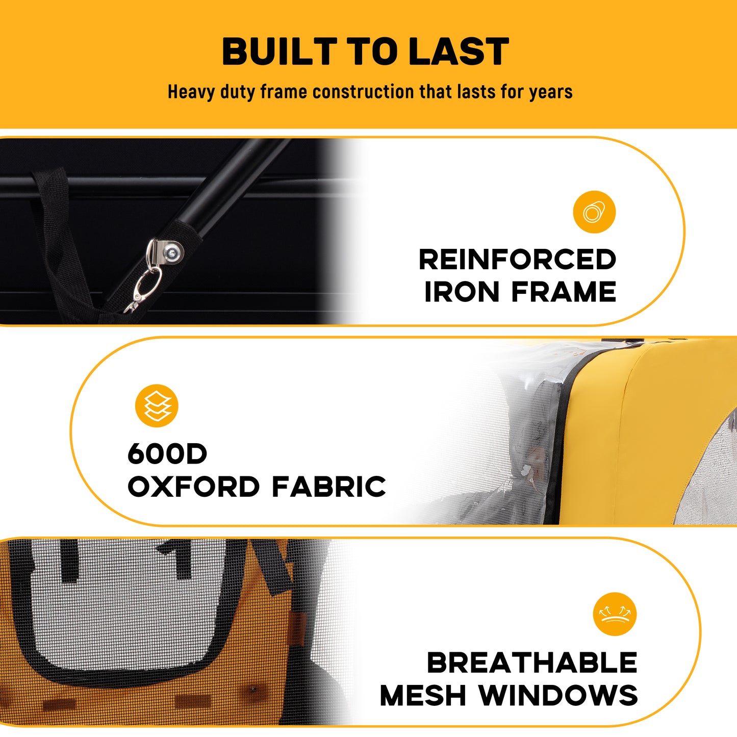 Yellow Outdoor Heavy Duty Foldable Utility Pet Stroller Dog Carriers Bicycle Trailer