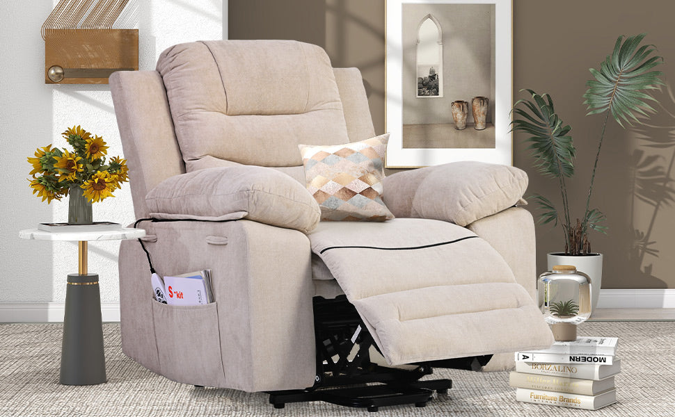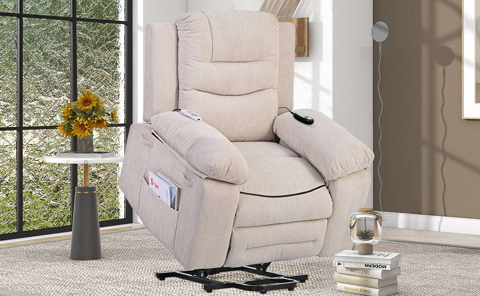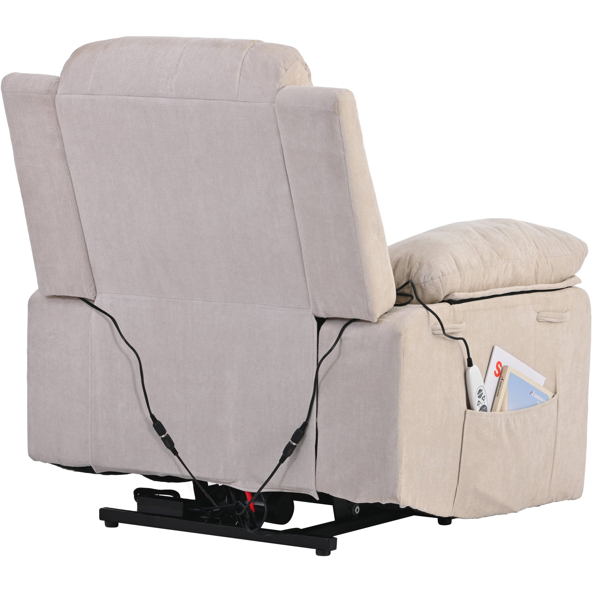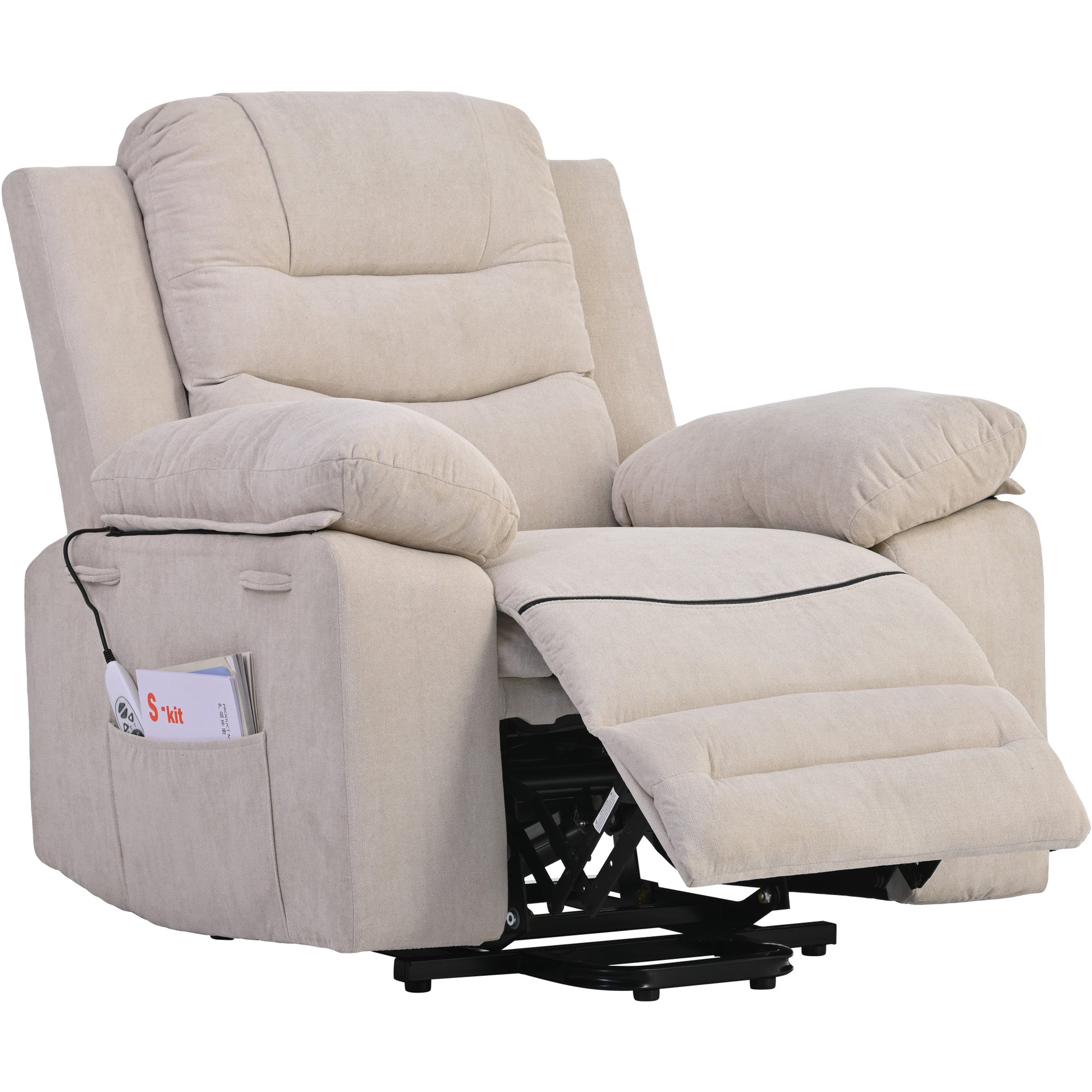 Massage Recliner,Power Lift Chair for Elderly with Adjustable Massage and Heating Function,Recliner Chair with Infinite Position and Side Pocket for Living Room ,Beige