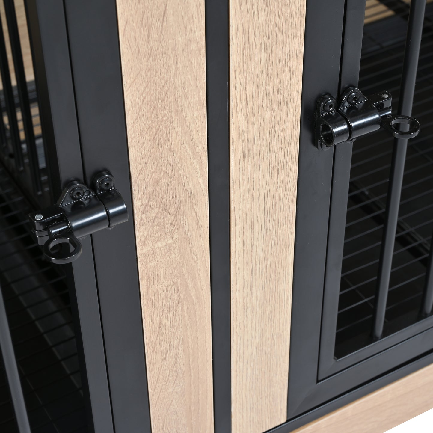 Dog Crate Furniture with Two Combined Room, XL Large Double Dog Cage Furniture with Tray for Medium Large Dogs, Wooden Dog Kennel Furniture