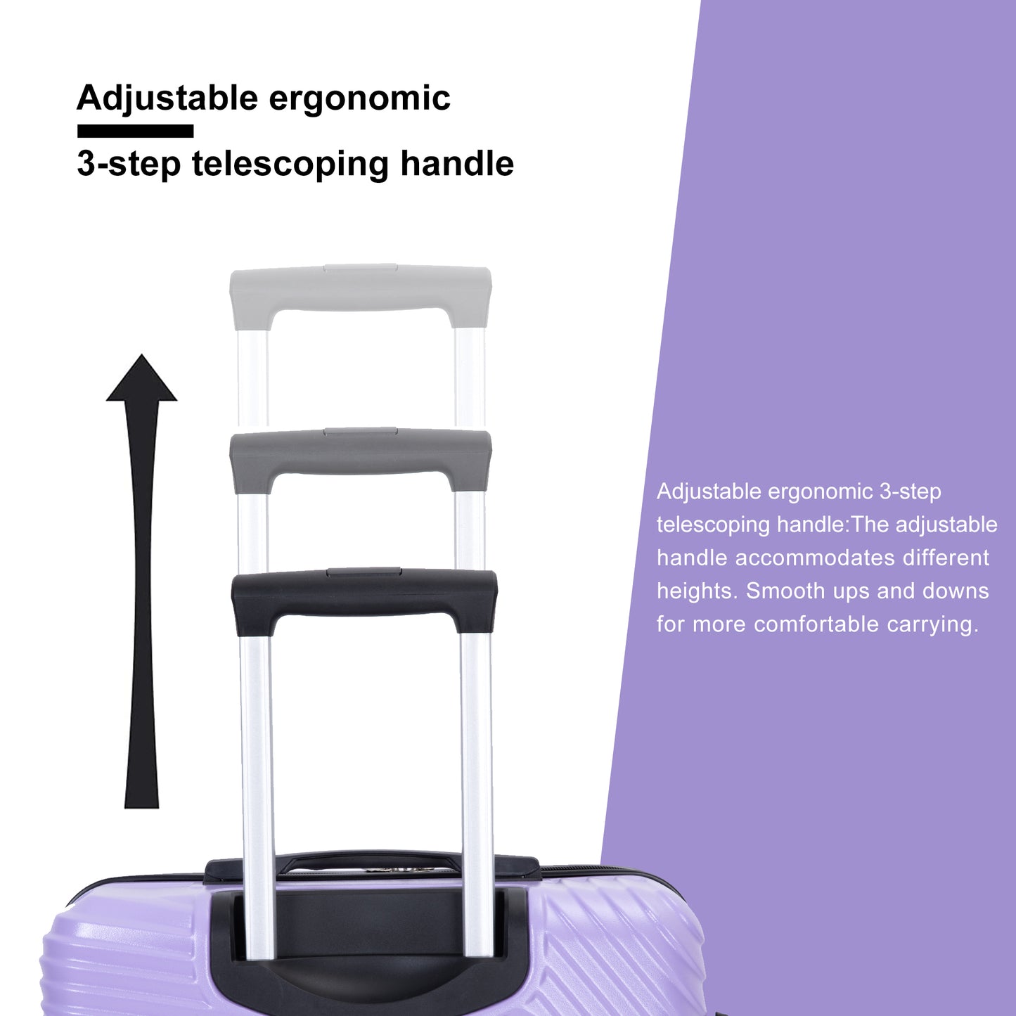 3 Piece Luggage Sets PC+ABS Lightweight Suitcase with Two Hooks, Spinner Wheels, (20/24/28) Light Purple