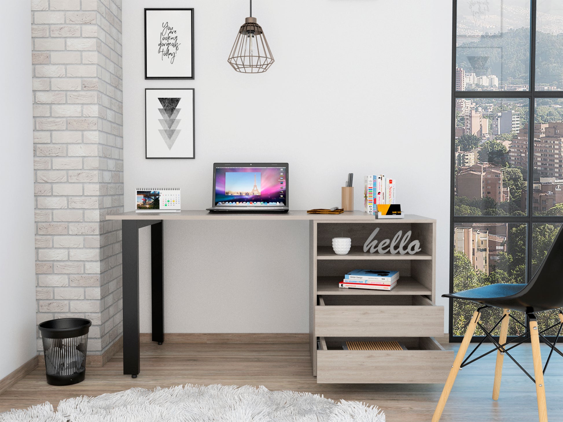 Malaui 120 Desk, Two Legs, Two Drawers, Two Shelves -Light Gray