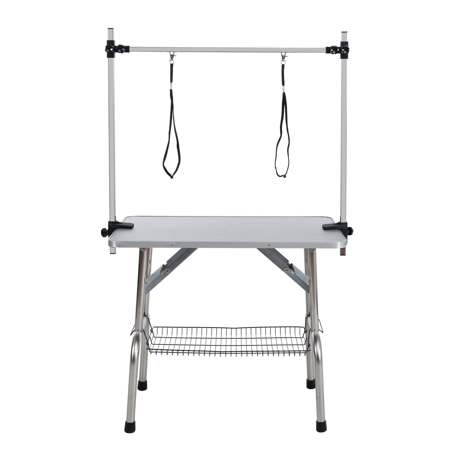36" Folding Dog Pet Grooming Table Stainless Steel Frame Rubber Mat on Board with Adjustable Arm and Clamps pet dog Cat Grooming Table (SILVER-GRAY COLOR)