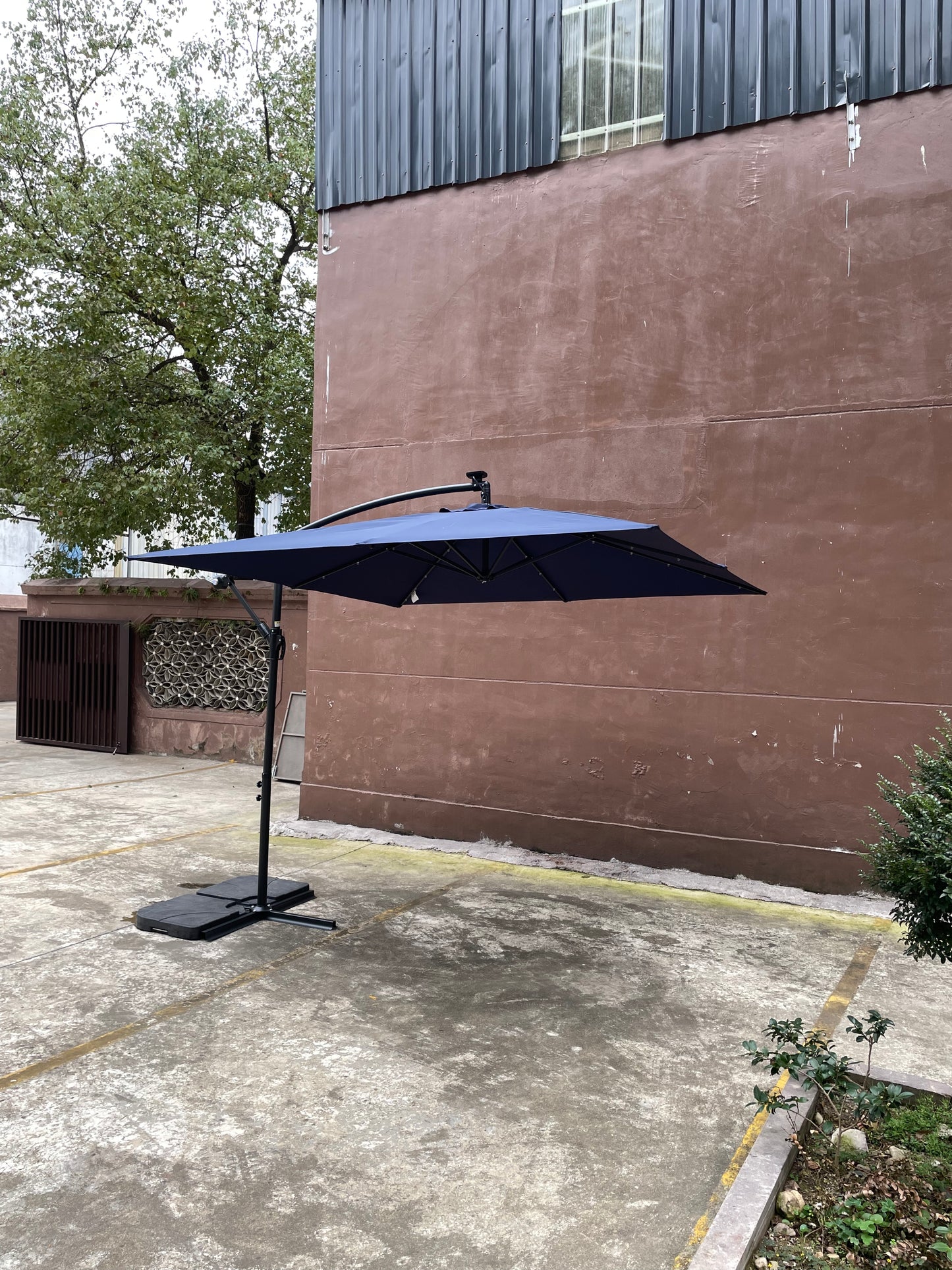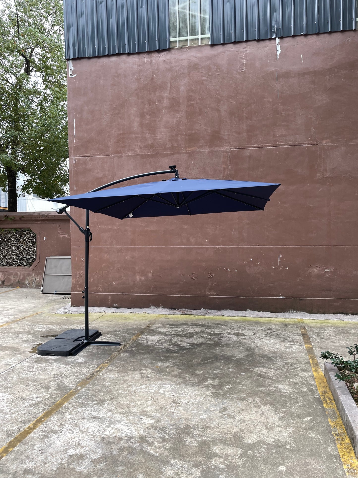 - Here comes a round solar LED patio umbrella, which provides you with such a large shade to enjoy the beautiful life of summer.