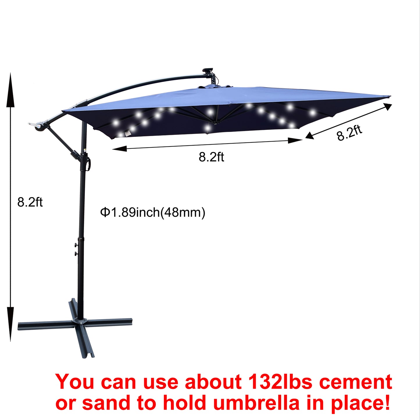 | Package Includes: | 1 X 32 LED Lighted Patio Umbrella;1 X Solar Panel;1X Cross umbrella base |
