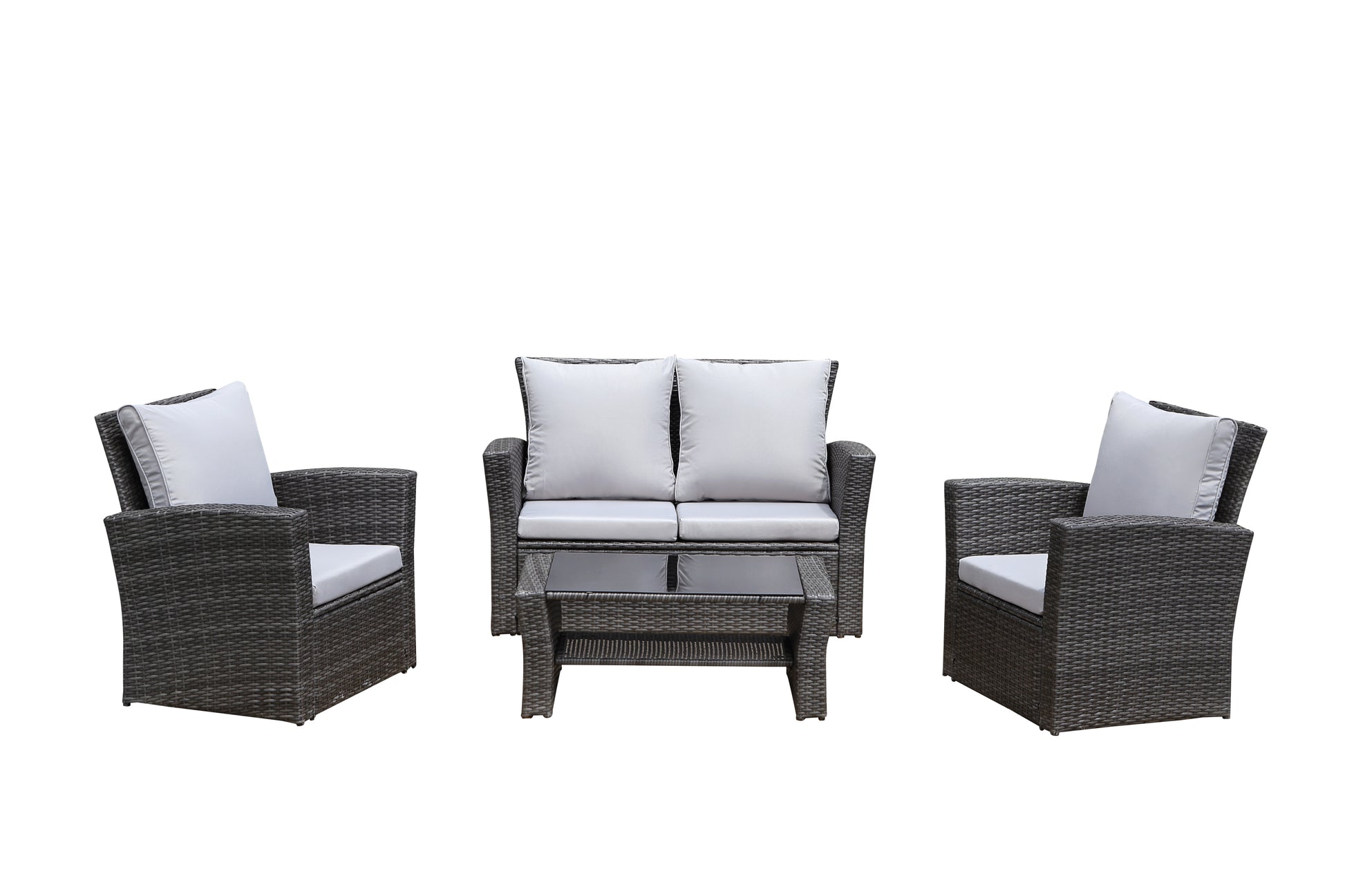 4-Pieces PE Rattan Wicker Outdoor Patio Furniture Set with Grey Cushions