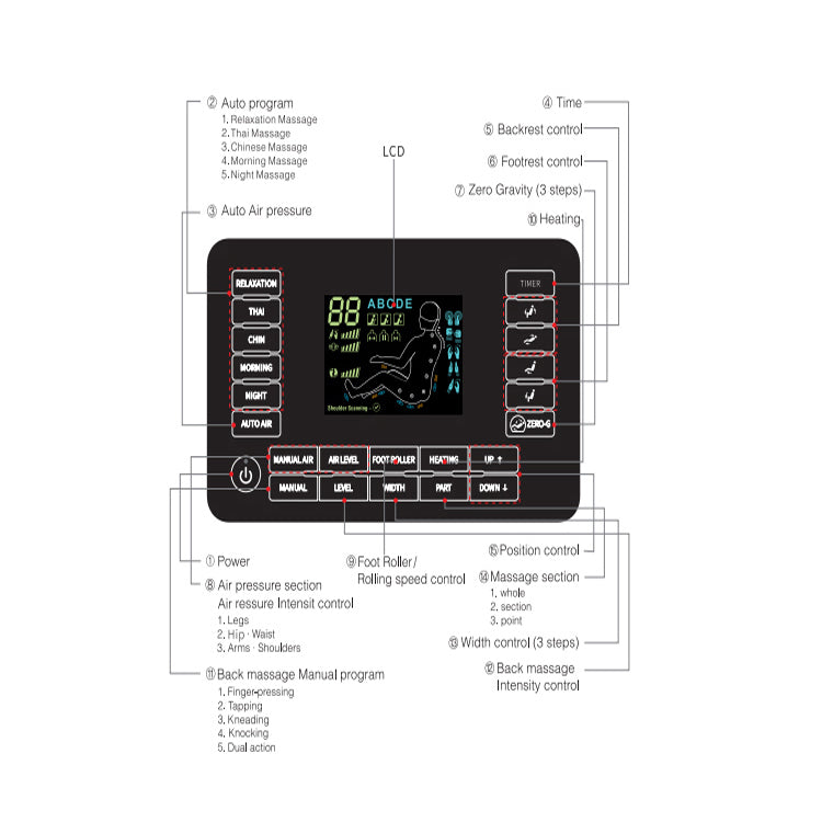 - 【AIRBAG MASSAGE】Equipped with full body airbags covering shoulders, arms, hip-waist, and legs. Dedicated airbag massage programs sync with automatic ones for a comprehensive body massage.