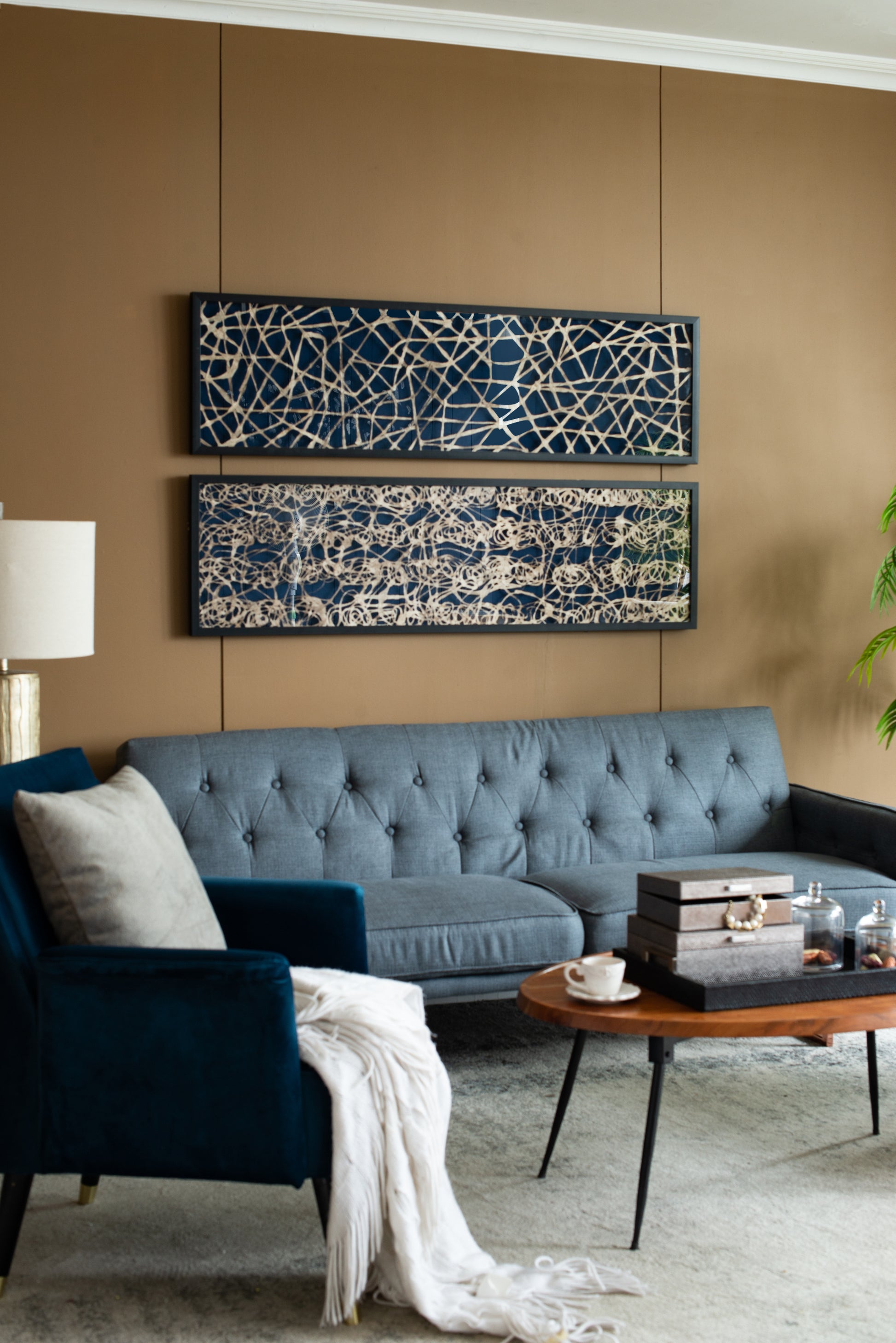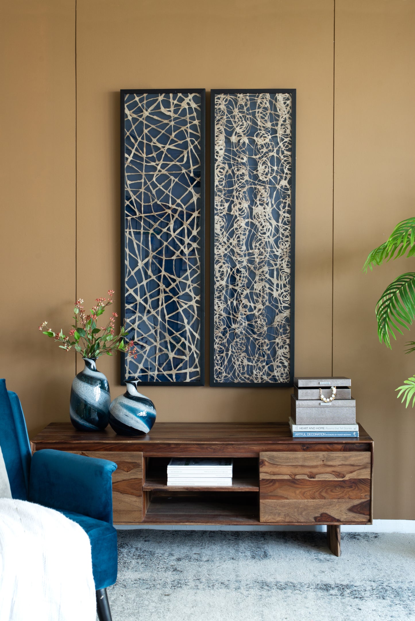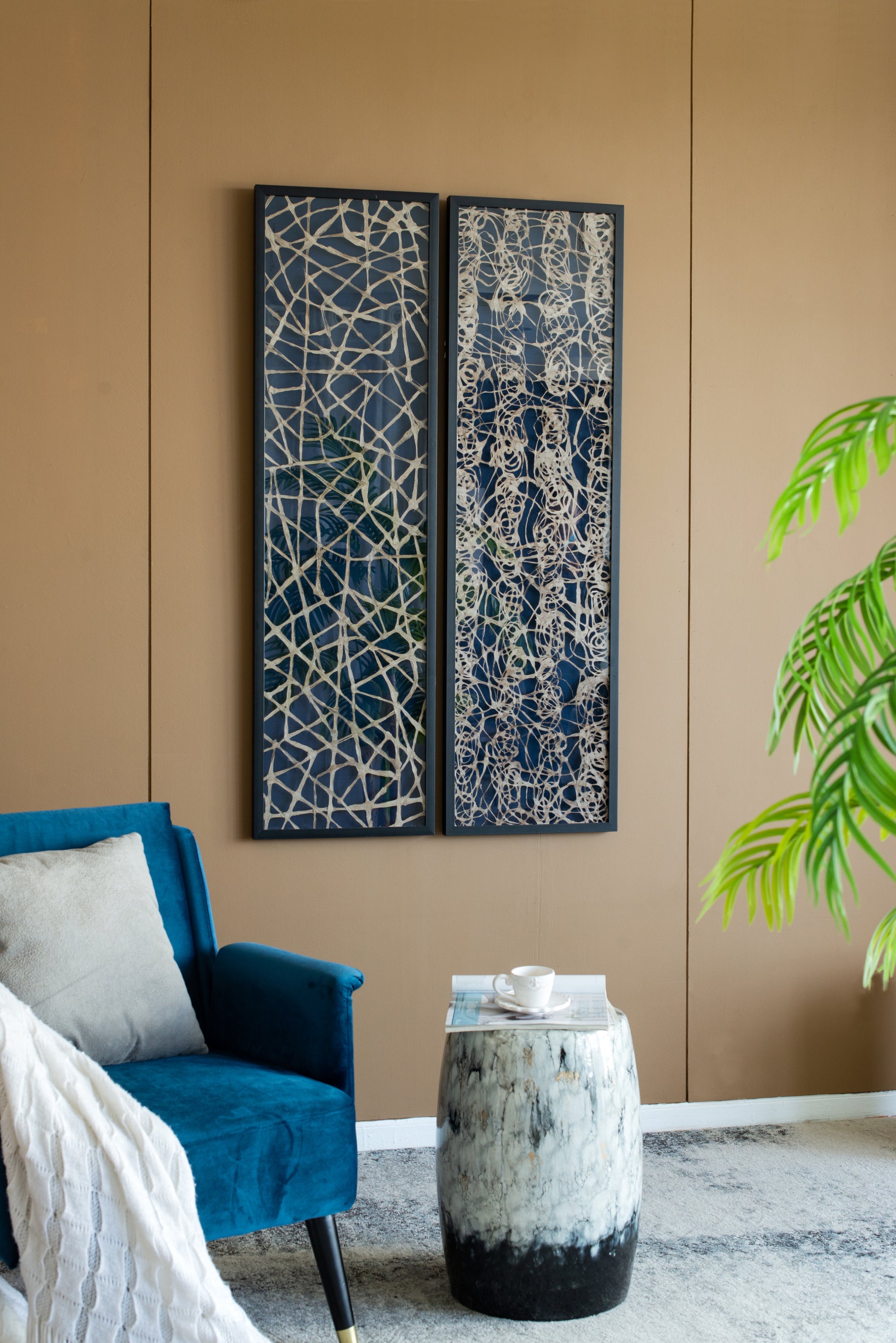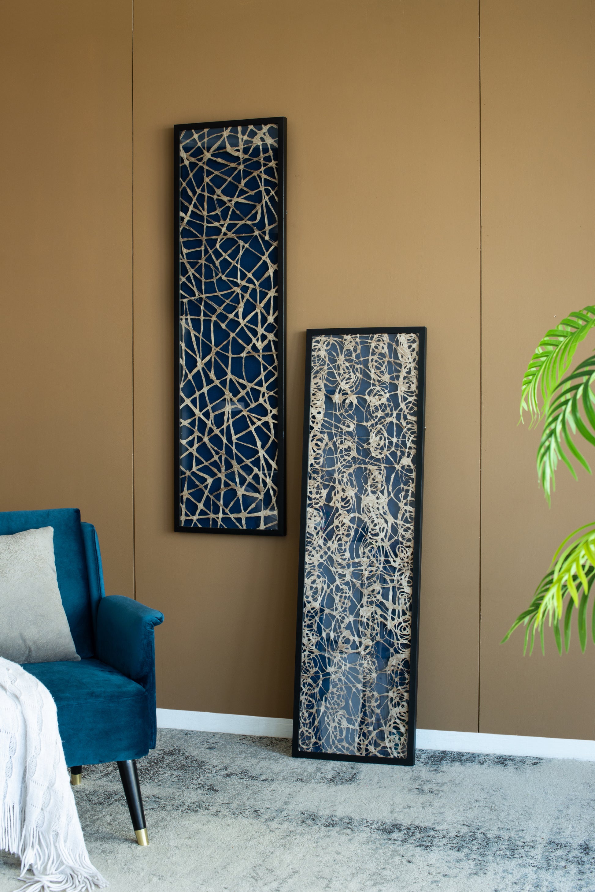 15.5' x 55' Rectangular Shaped Rice Paper Shadow Box Decor Wall Art, Transitional style Wall Decor, Set of 2