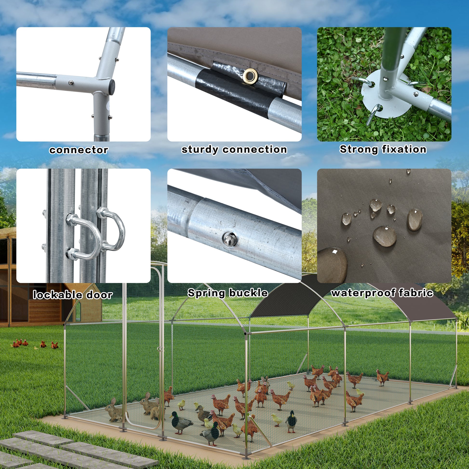 Large Metal Chicken Coop with Run, 19.7x9.8x6.6ft, Walkin Poultry Cage for Yard with Waterproof Cover, Dome Roof Large Poultry Cage for Hen House, Duck and Rabbit, Silver