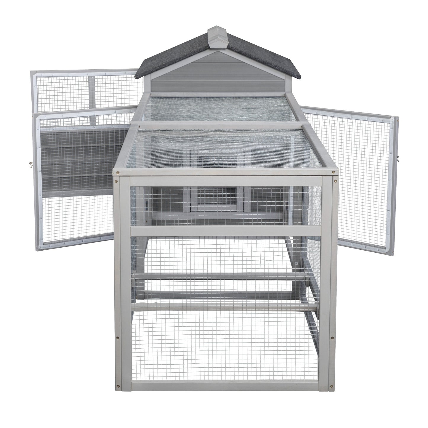 Wooden Chicken Coop Hen House with Doors for Ventilation, Runs and Nesting Box, Gray