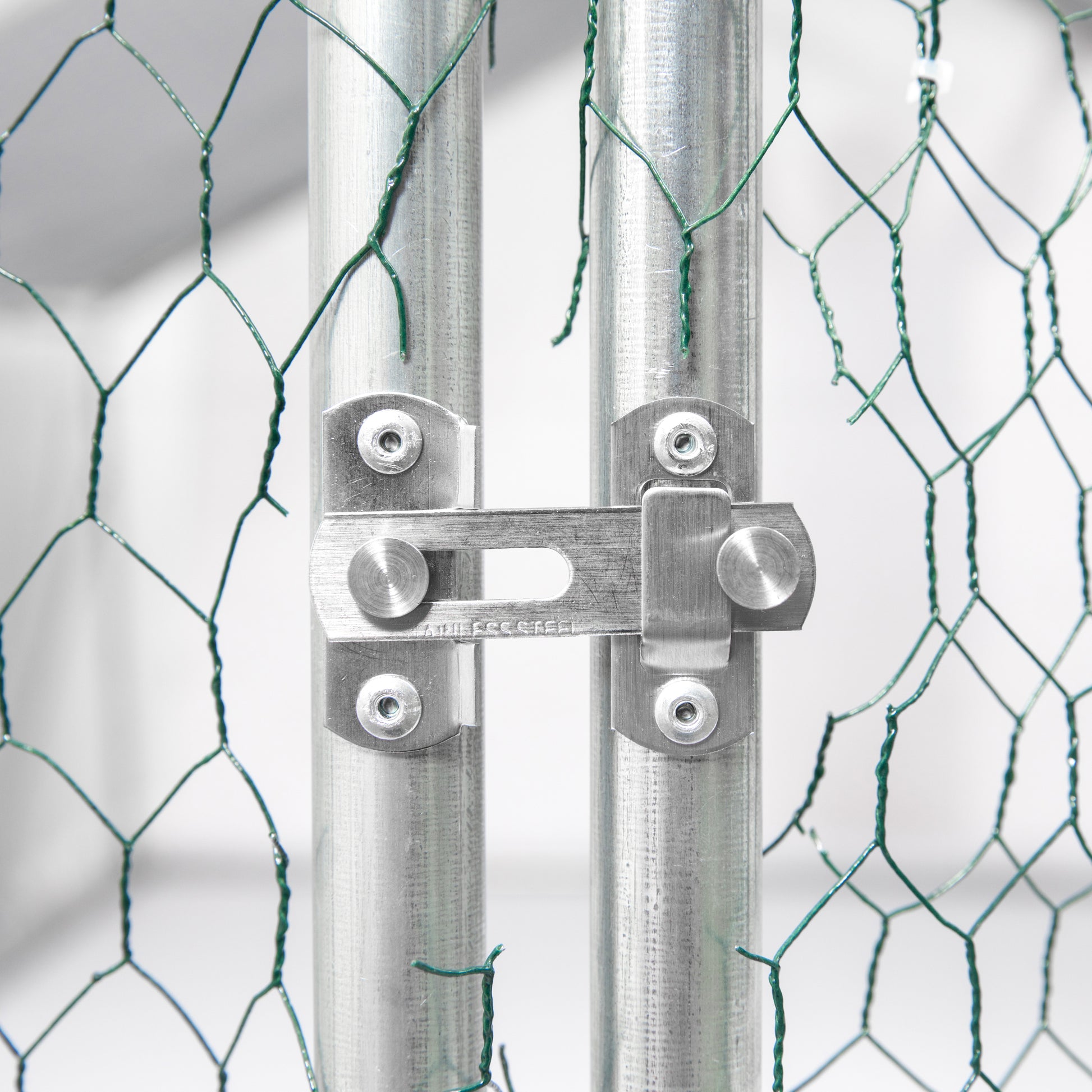 - The small gaps between meshes add safety to your chicken that prevent them from some predators.Lockable steel door with a latch and steel wire ties for extra safety.