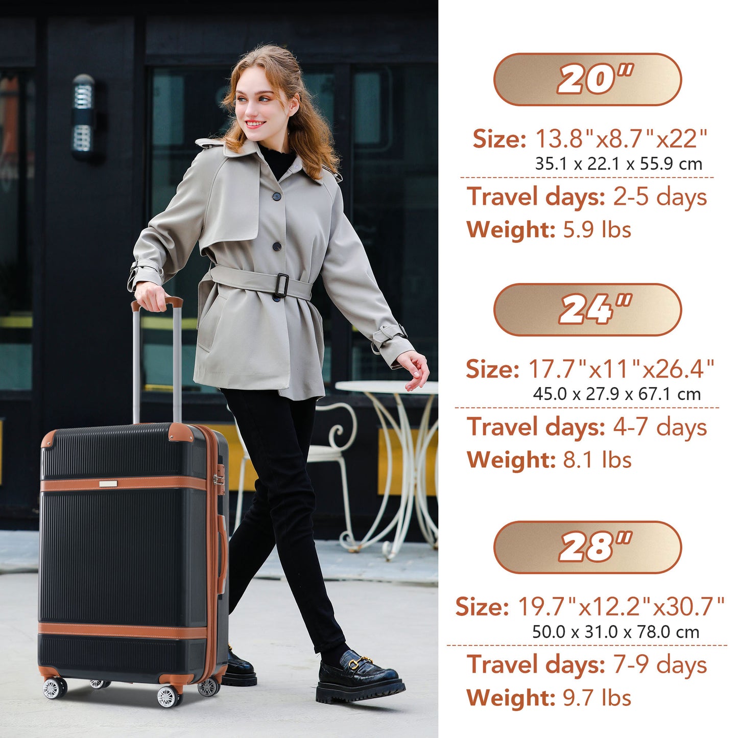 - Expansion function adds 20% extra space (only for 24-inch and 28-inch). The 24-inch and 28-inch luggage feature reinforced side handles and bumper feet for easy portability.