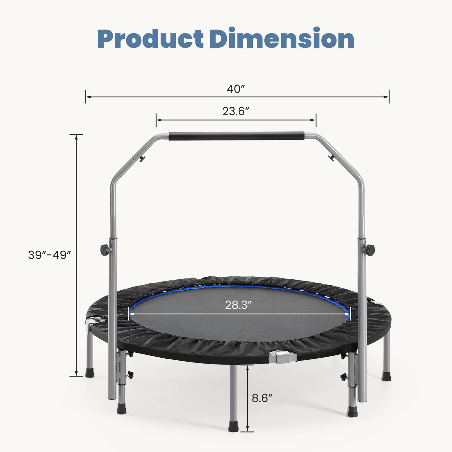 40" Foldable Mini Trampoline for Adults, Trampoline for Adults with Adjustable Bar