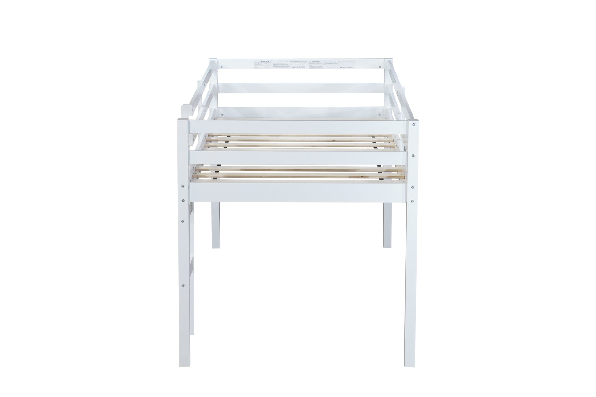 Solid Wooden, Rubber Wooden Twin Loft Bed with Ladder, Bed Platform of Strengthened Slats , White