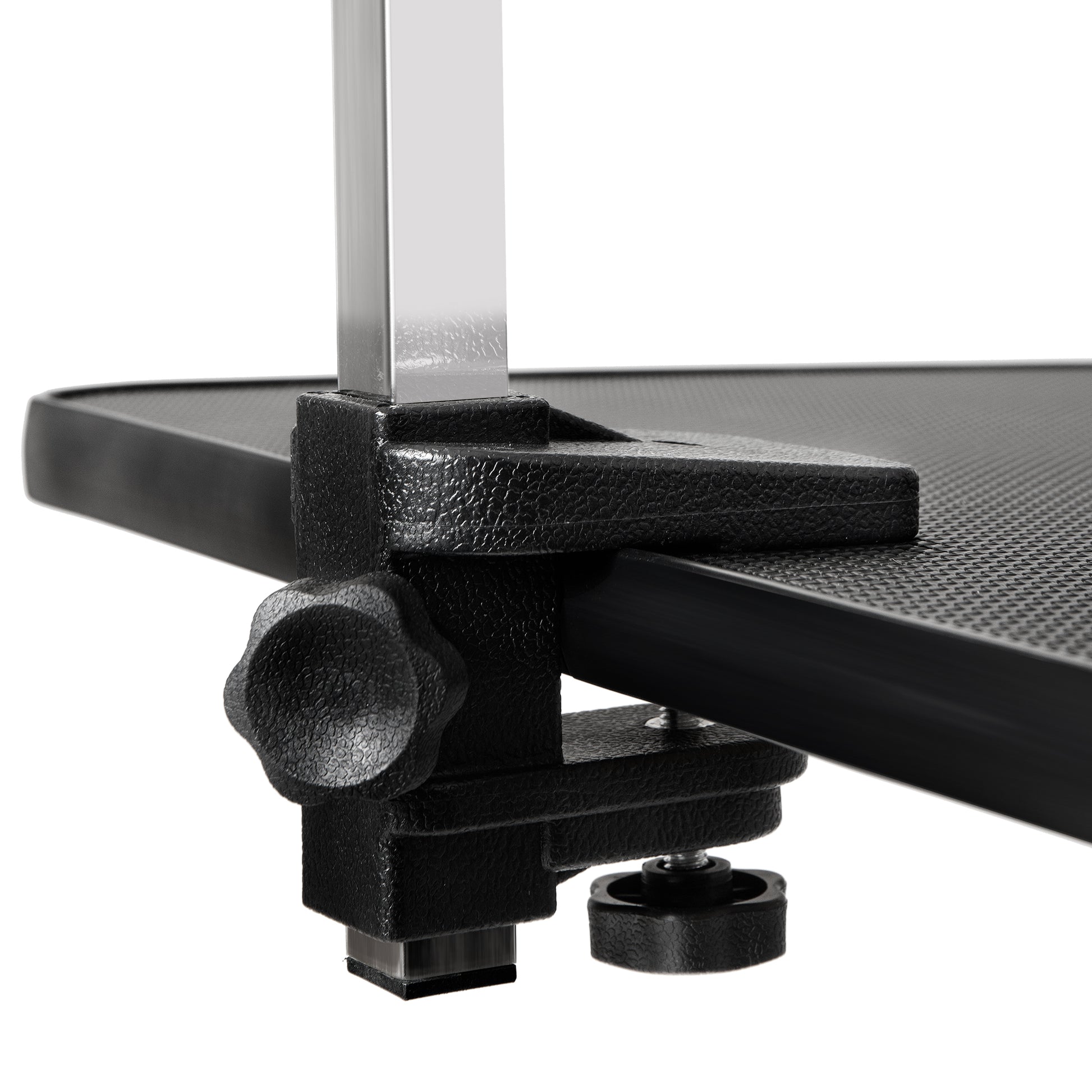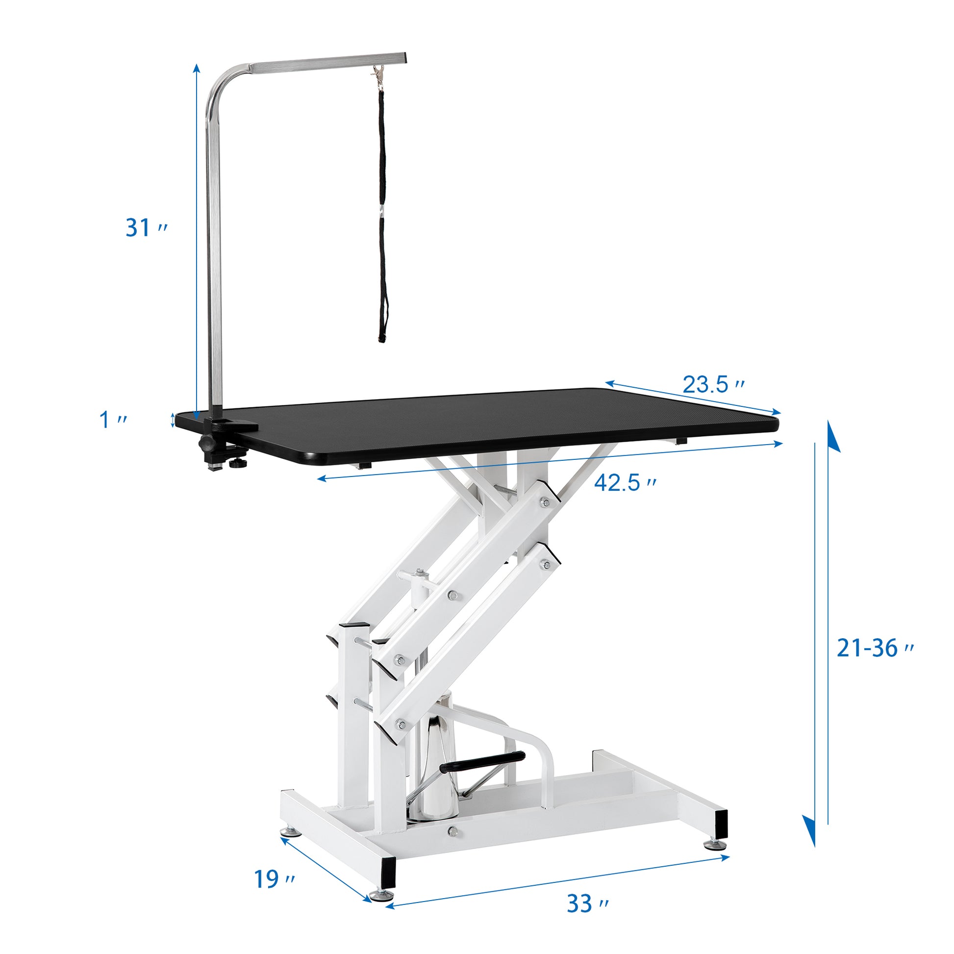 - Clamp-on style adjustable stainless steel arm and grooming leash to keep pet in place. Adjustable grooming arm with leash. you can adjust the arms height according to the dog needs.