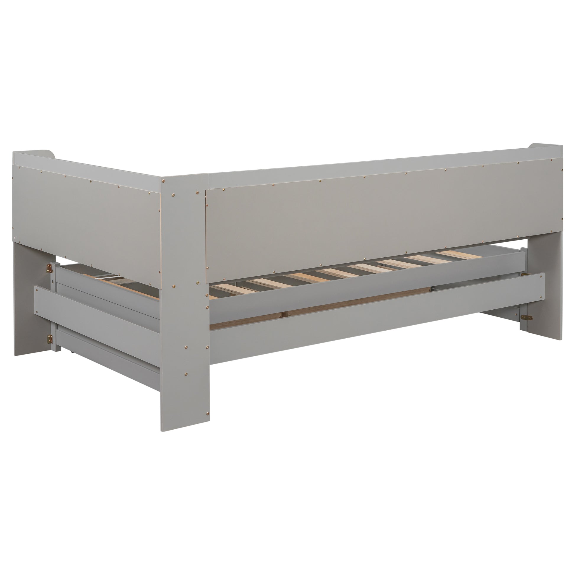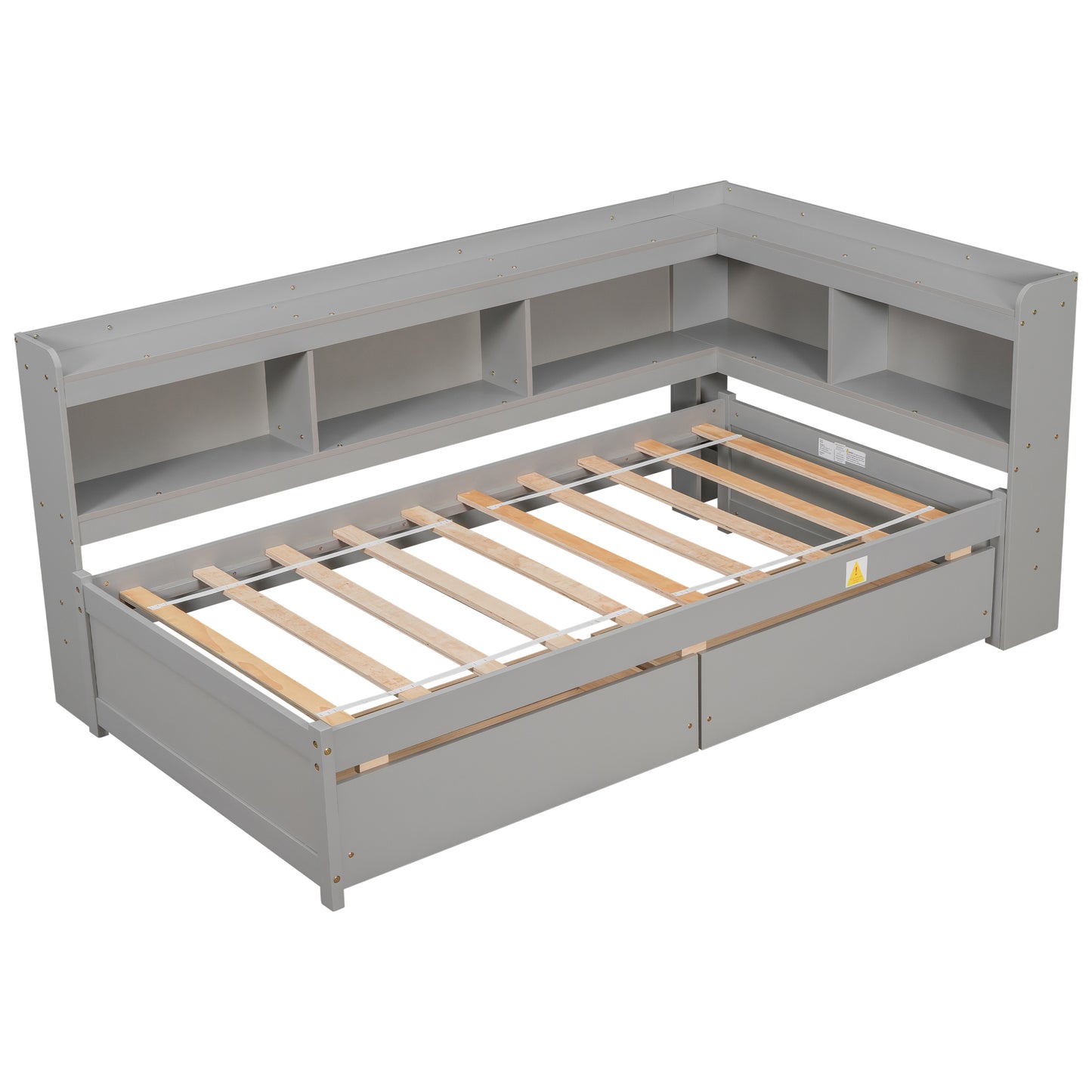 Twin Bed with L-shaped Bookcases,Drawers,Grey