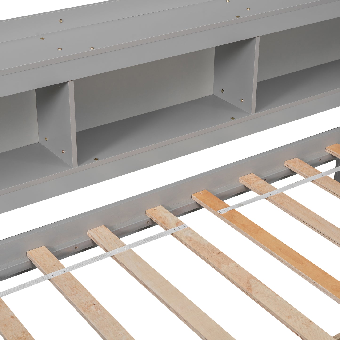 - [L-shaped Bookcases ] The multifunctional function L-shaped bookcases attached to the two bedsides in full length contain distinct compartments that can be used to decorate and store books, toys, lamps and other accessories. This intelligible design saves the extra space and cost for the need of a bedside cabinets, and it's the perfect solution for small living space- transforming a small chaotic space to a neat and fascinating bedroom.