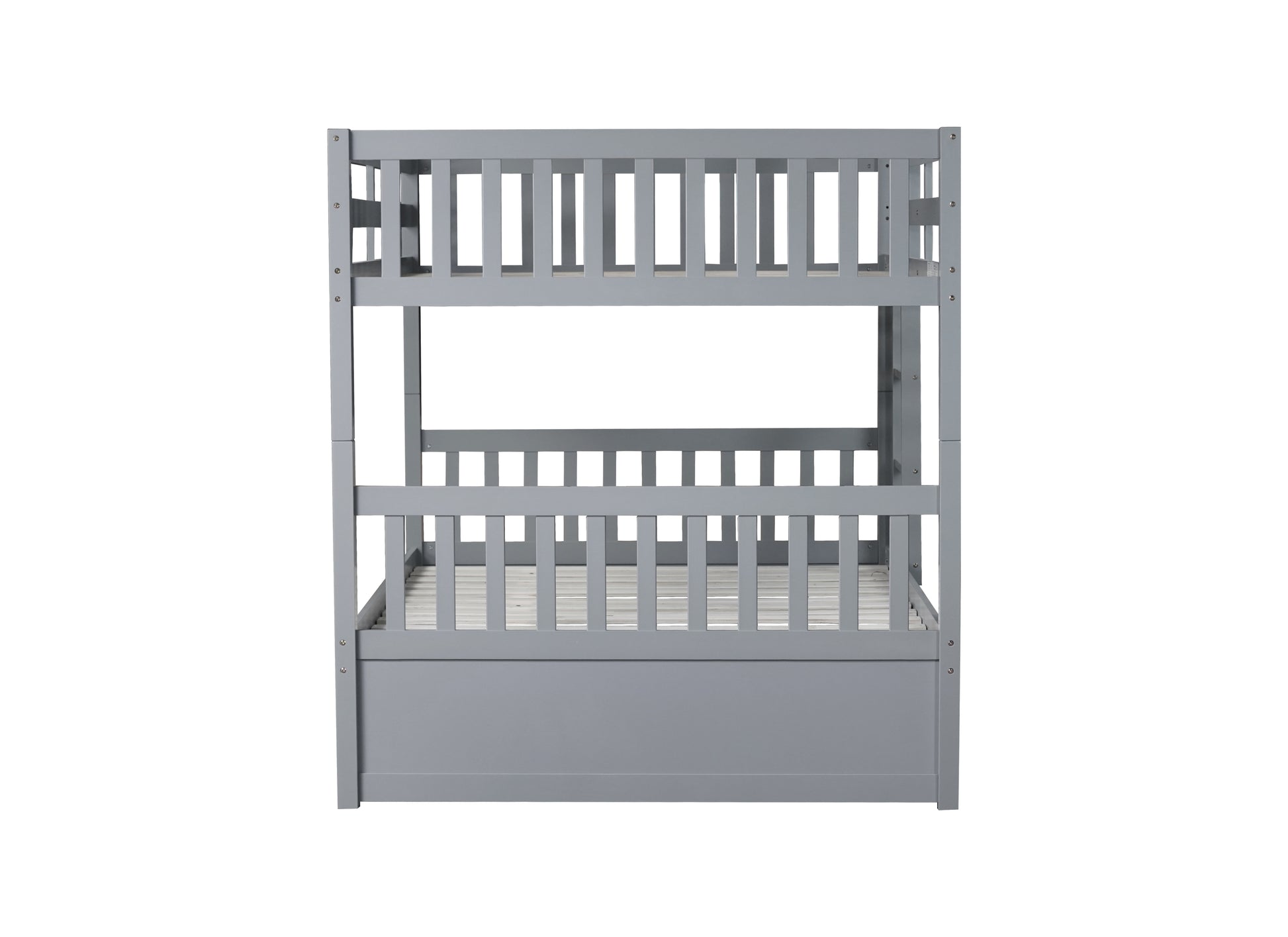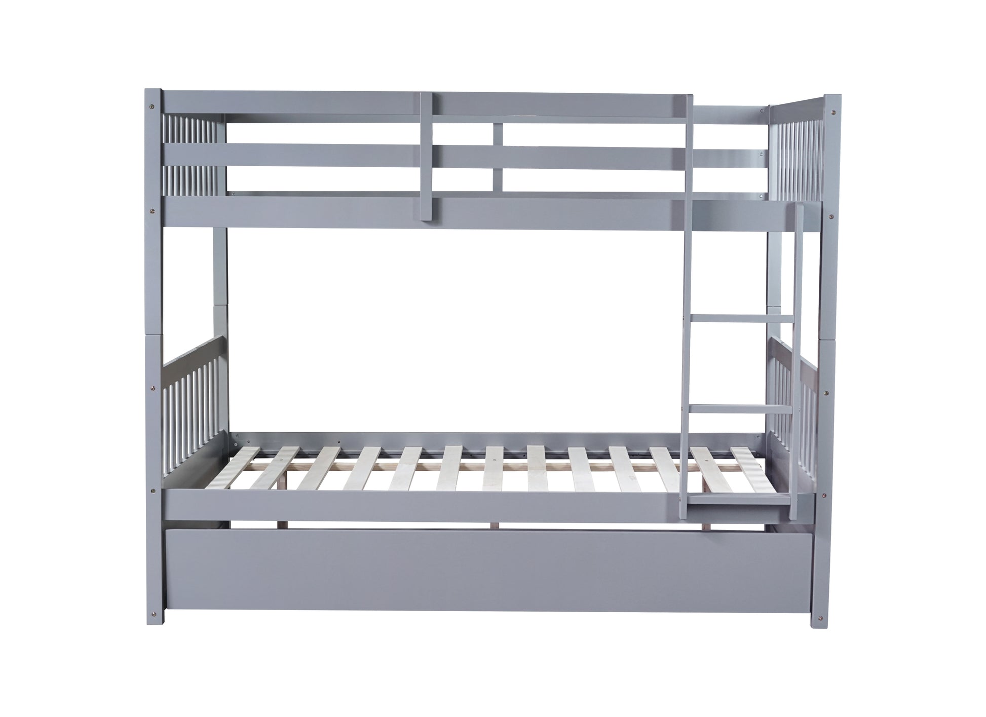 Full Over Full Rubber Wood Bunk Bed with Trundle, Ladder and Guardrails, Convertible to 2 Full Size Beds, with Twin Size Trundle ,Grey(Old Sku:W504S00250)