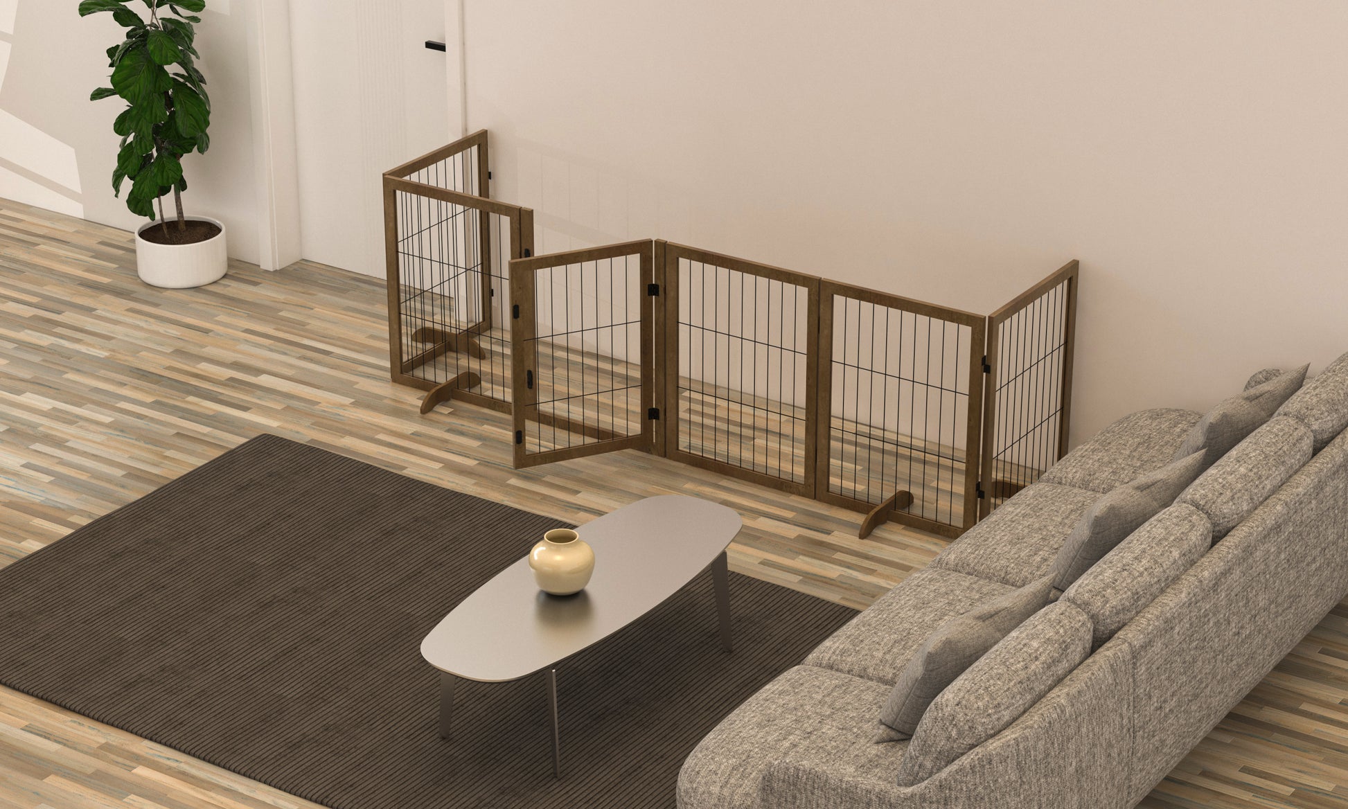 - Easy to Set Up & Store: This freestanding dog gate is already assembled open to use, no wall attachments, no holes, no drills. Easy to move and set up anywhere. Compact size 23.62"L x 4.5"W x 31.5"H when folded, easy to store.