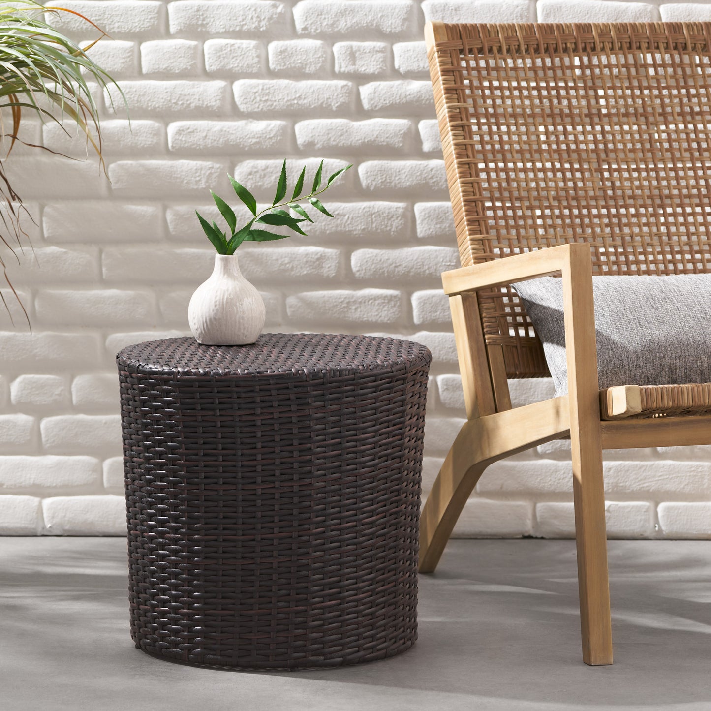 - A touch of personality - Bring your outdoor space to life with our accent table that features a classic barrel design and a beautiful wicker weave. With charming aesthetics, this side table will be sure to enliven any backyard or patio.