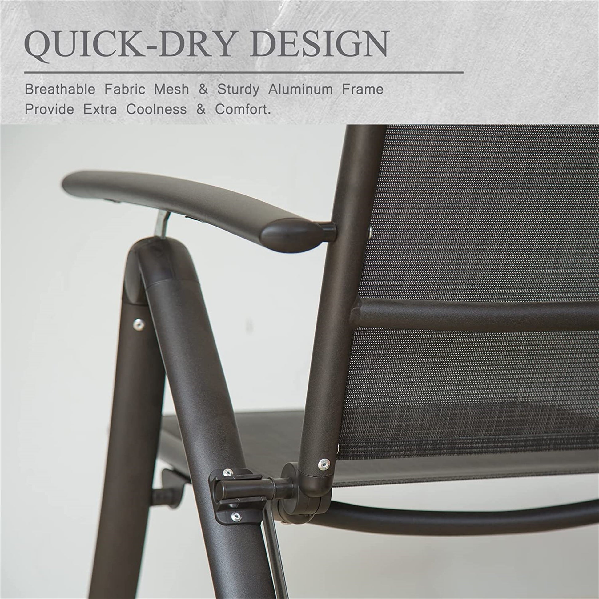 - [ADDITIONAL COMFORT]: The seat is made of breathable textilene fabric mesh, which not only provides extra coolness and comfort for cozy sitting experience but also extends the time of use. Additional comfort than a standard folding chair.