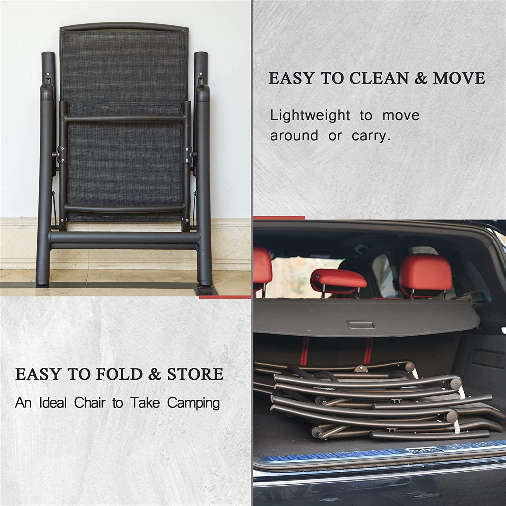 - [7 ADJUSTABLE POSITIONS]: There are 7 adjustable positions of backrest to meet your different needs. The folding chair LENGTHENS BACKREST UP TO 44.5’’ that can go past your head comfortably.