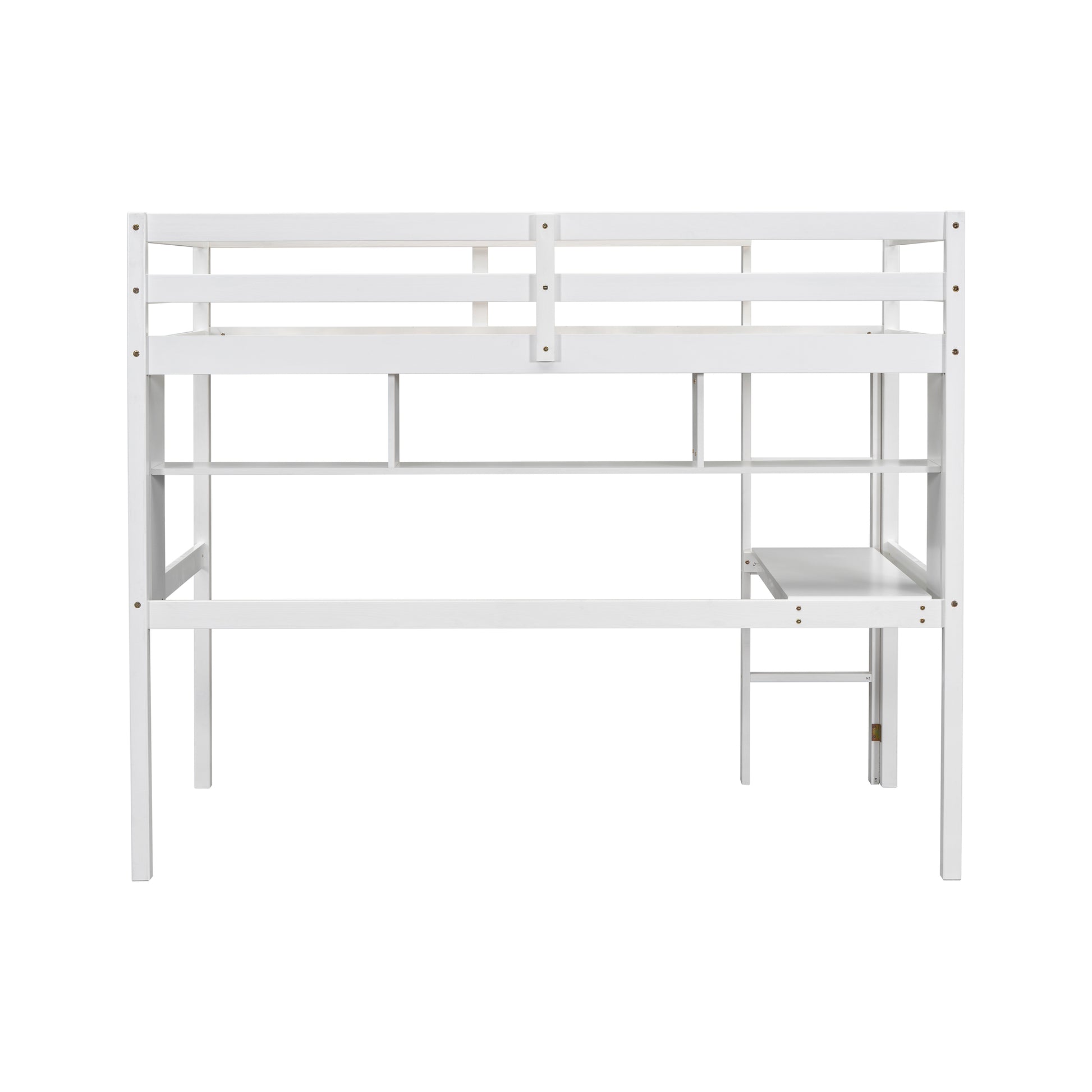 Twin Size Loft Bed with desk and shelves, Safety Guardrail and ladder,White