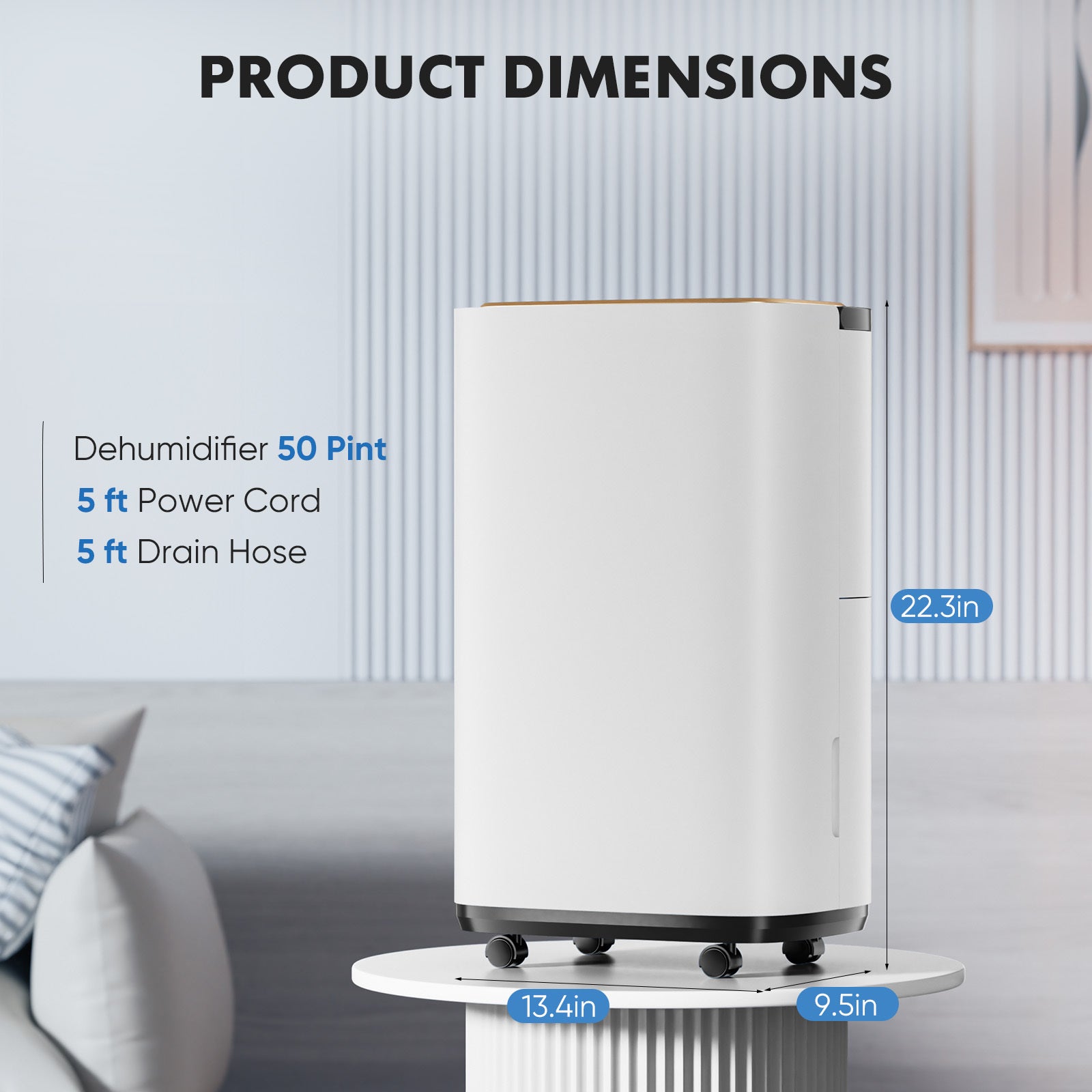 Dehumidifier for Basement with Drain Hose, 50 Pint Portable Dehumidifiers for Home Bedroom Bathroom Large Room, Powerful Moisture Removal and Humidity Control,6L