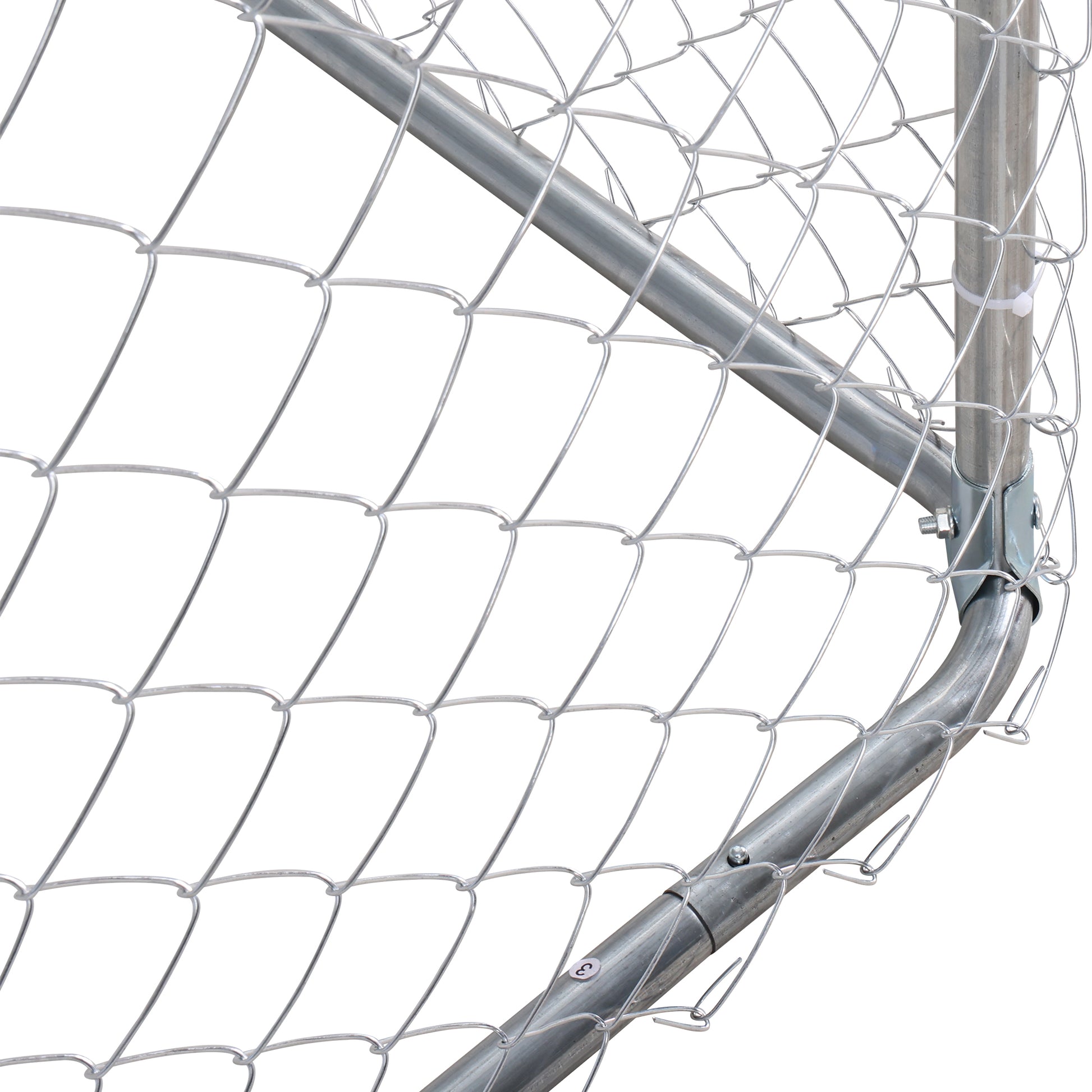 - A big square feet of luxurious roominess makes this xl chain link dog fence with roof a spacious friend. Use this outdoor dog run for large dogs and puppies who need to run around.