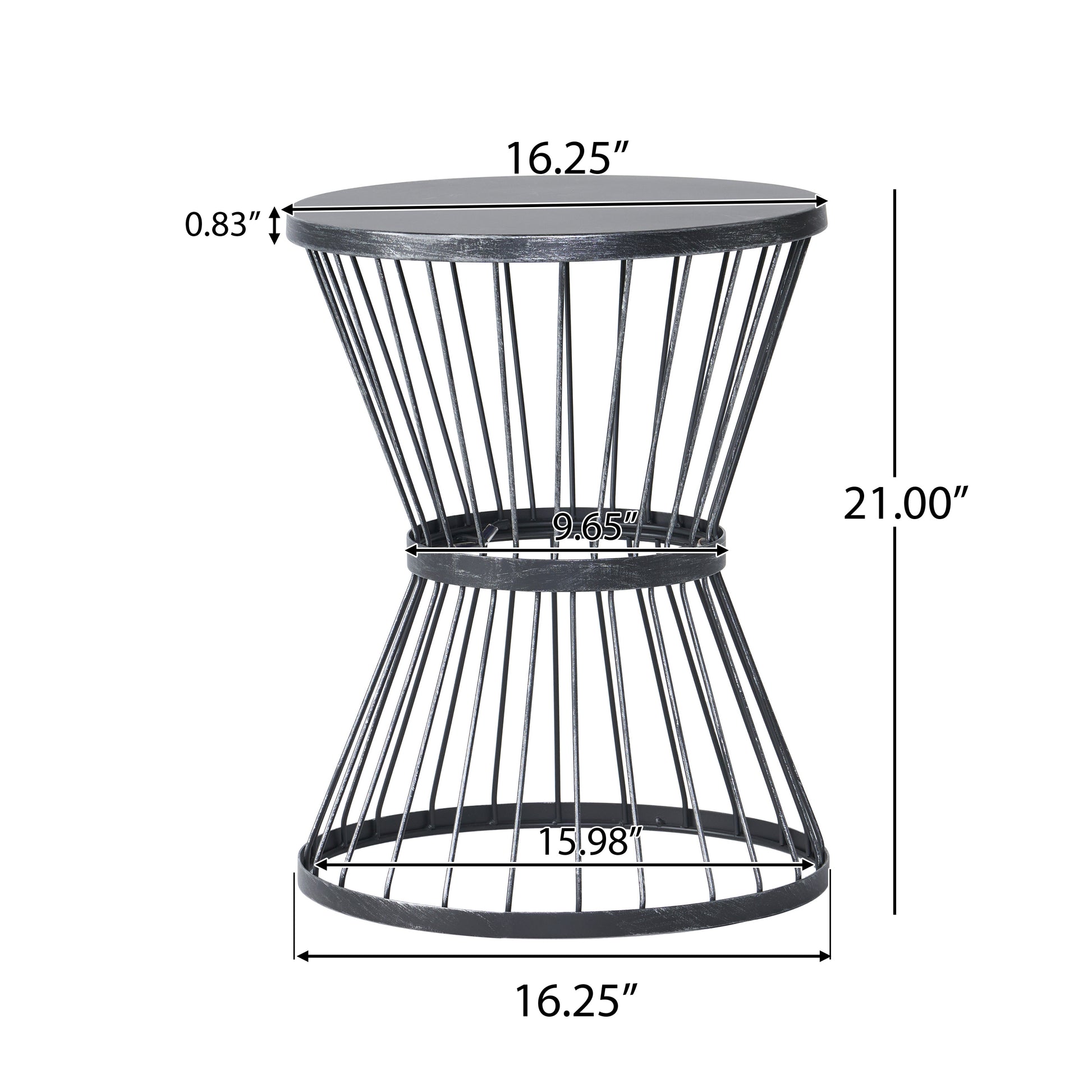 - The frame of this side table features a sleek, modern hourglass structure and an open cage design, making this piece great for any area in need of something new.