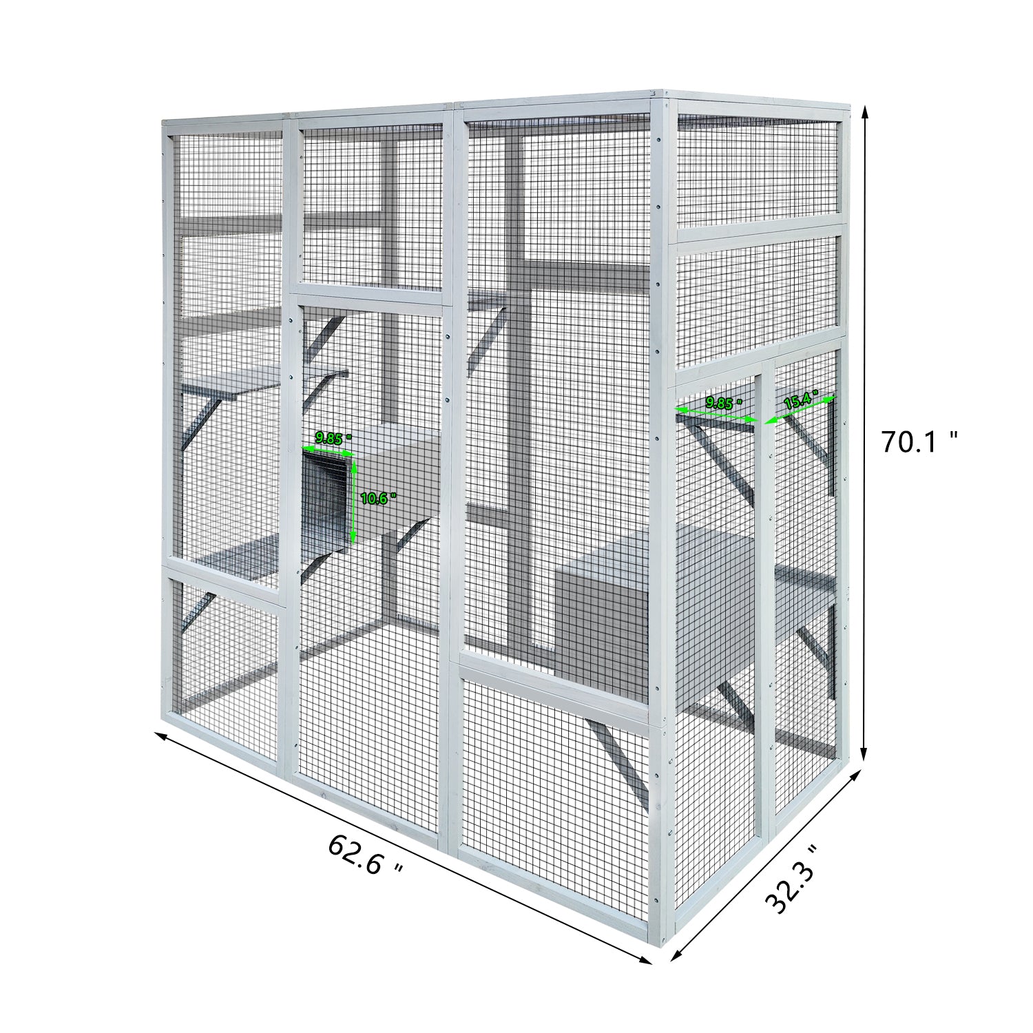 62.6" Outdoor Wooden Cat House Large Catio, Solid Wood Cat Cage Shelter Enclosure Playpen with Anti-UV& Waterproof, 7 Platforms and 2 Resting Boxes