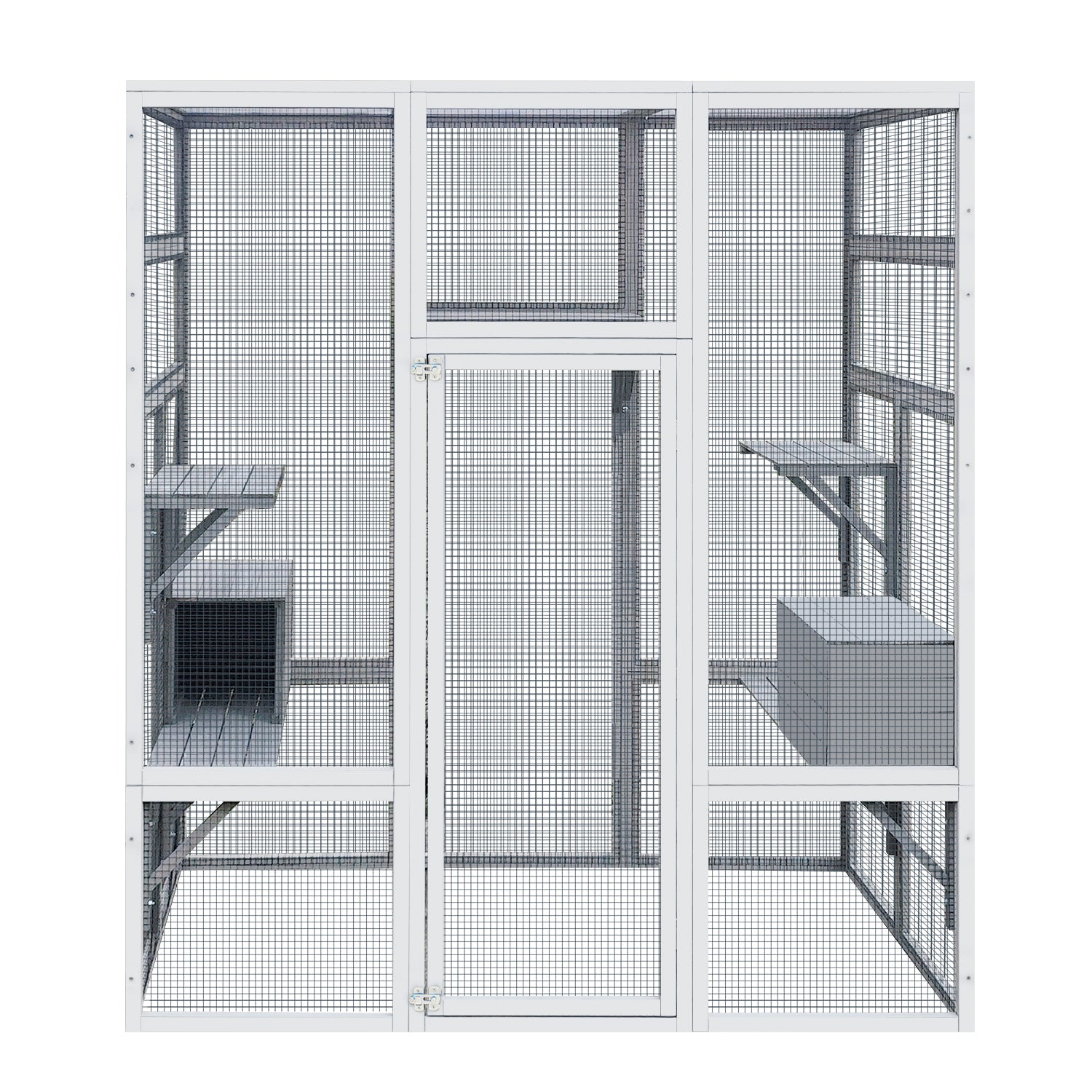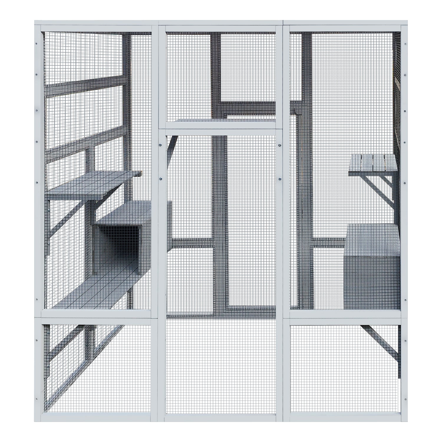 - Convenient Window Catio Design: The wire mesh of the outdoor cat house can be taken off, therefore you can connect it to the window or a pet door, giving your pet the freedom to play outdoors and indoors while ensuring safety.