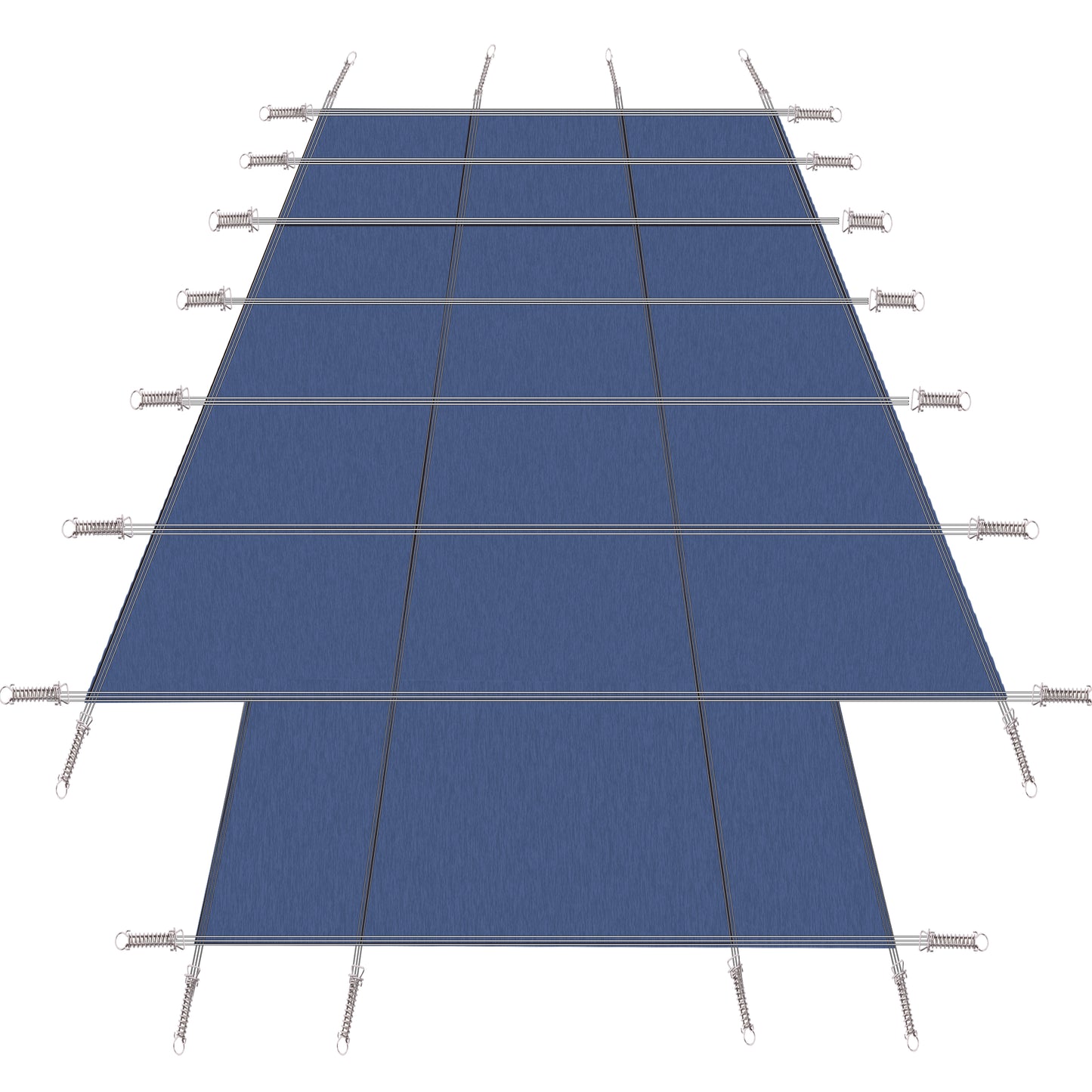 - Complete Hardware Kit for Easy Installation: The pool cover comes with all the necessary hardware for a simple and quick installation. The package includes brass anchors, stainless steel springs, and all required installation tools. With a drill and tamp brass anchoring system designed for concrete and an adjustable rope length, setup is straightforward and adaptable to different pool configurations.