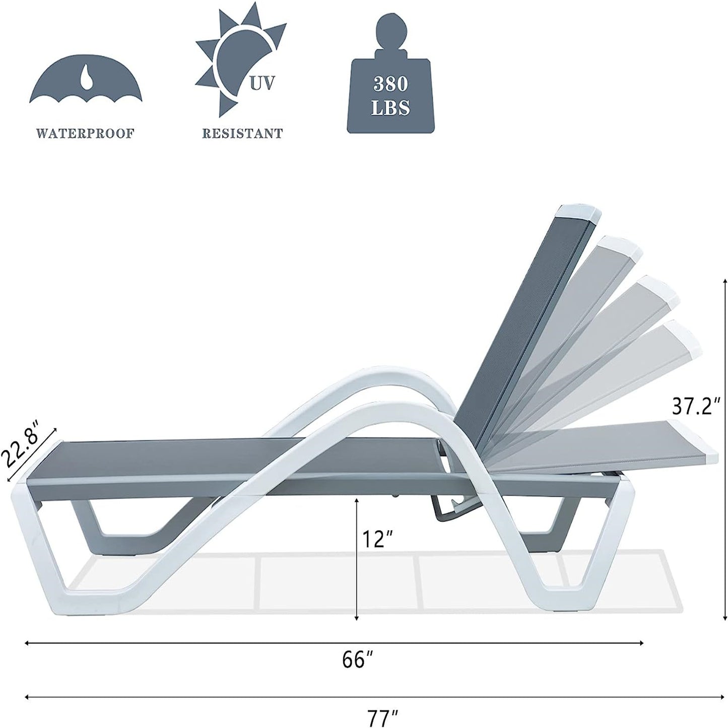 - 【DURABLE TEXTLIENE MESH】:With UV-resistant Textilene for outdoor long lasting use, this patio chaise lounge is breathable, waterproof, quick drying and high strength support.