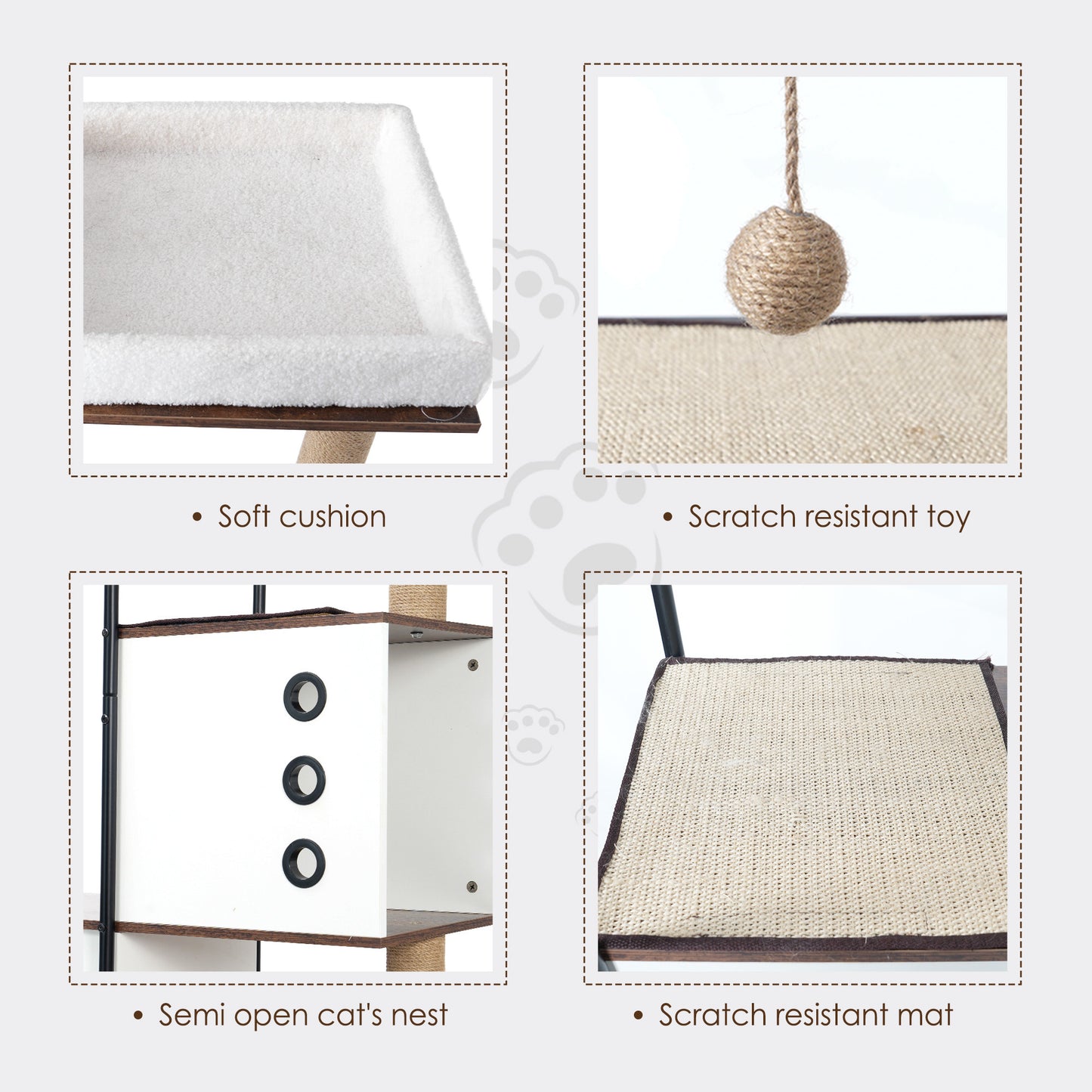 - 3.Modern Style: With rectangular design and curved steel tubes, this cat tree condo is sophisticated and modern. Whether you put it in your living room, bedroom or balcony, anywhere, this cat tree will give your space an upgrade.