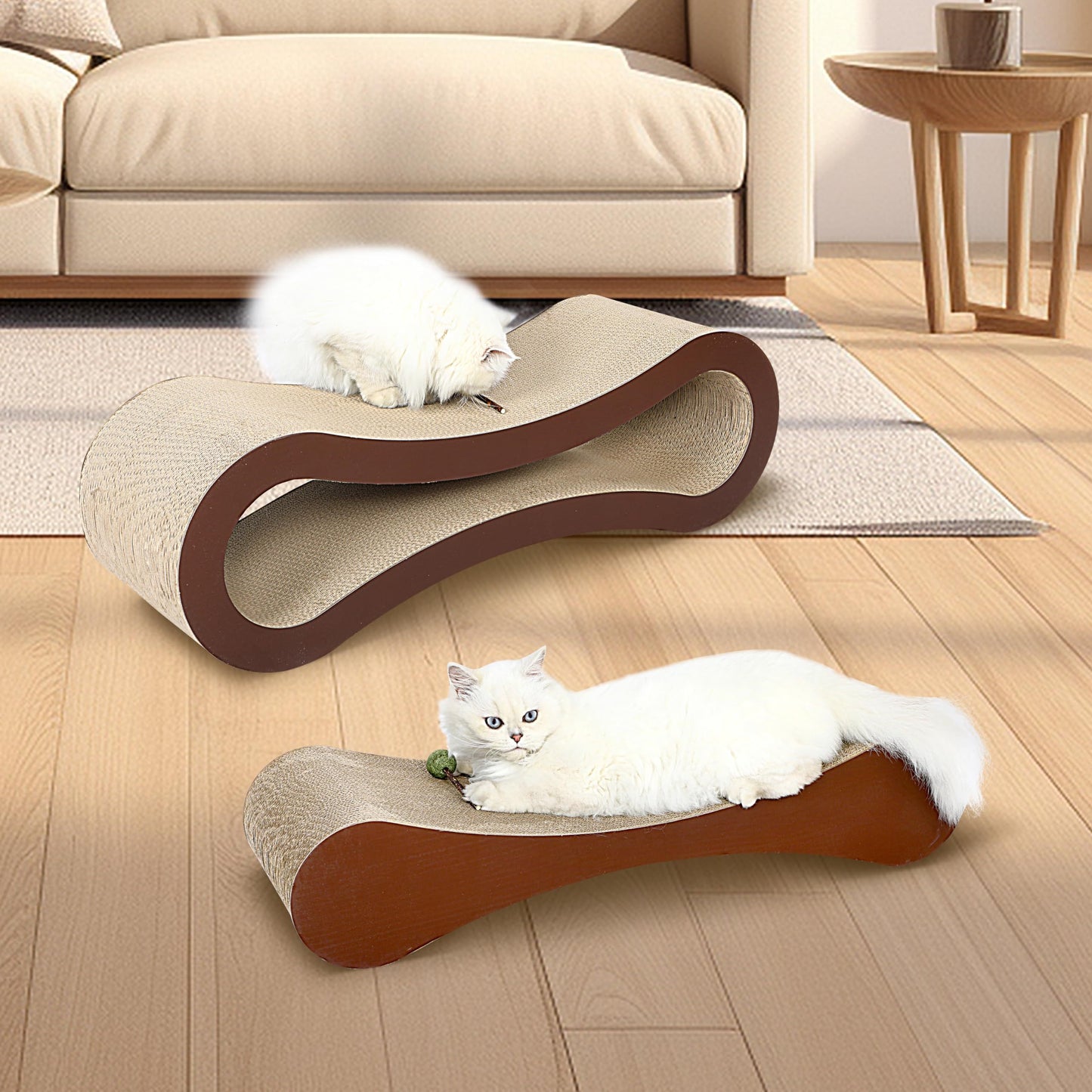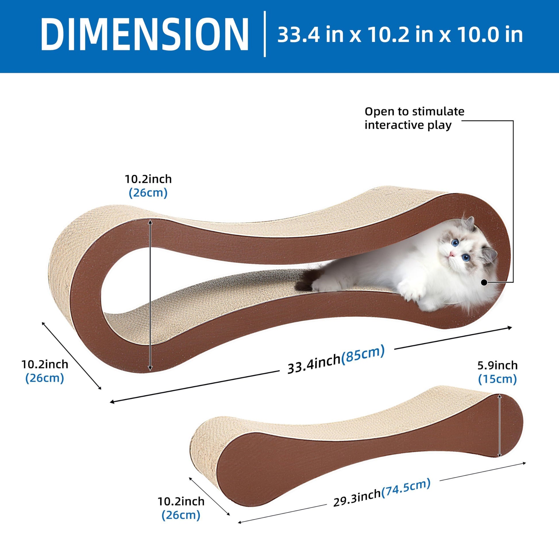 - Unique Infinity Shape: Features a distinctive infinity shape which makes a cozy cat bed or lounger. The shape enhances the visual appeal of the cat scratcher.