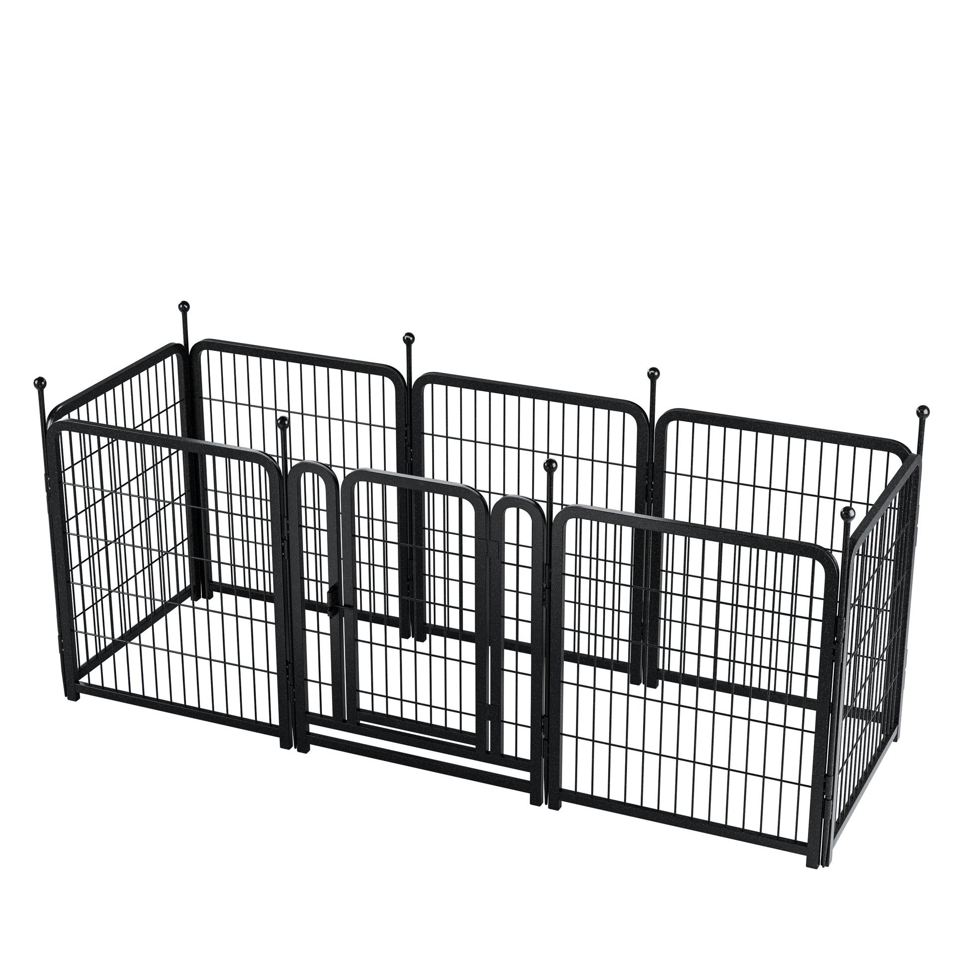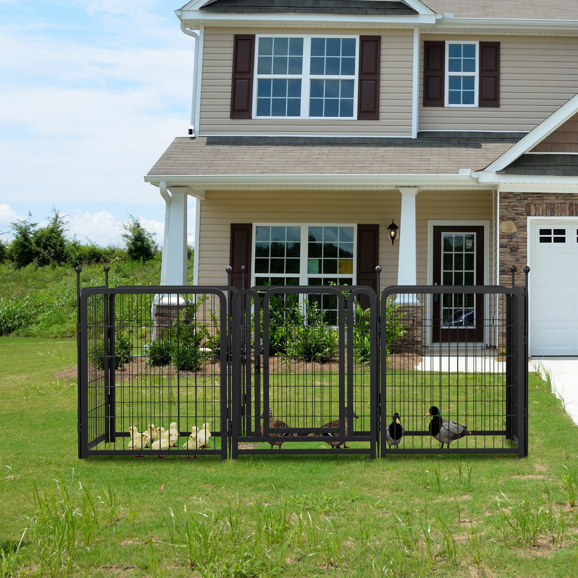 - Anti-Rust & Stable: The dog fences for the yard take in new technology that crafted with silver powder-coated on black heavy-duty thickened iron, come to be highly rust & corrosion resistant, waterproof and anti UV. Enable to increase longevity and durability whatever indoor or outdoor. Coupled with heavy-duty thickened metal pipes add to the stability of the dog pen.