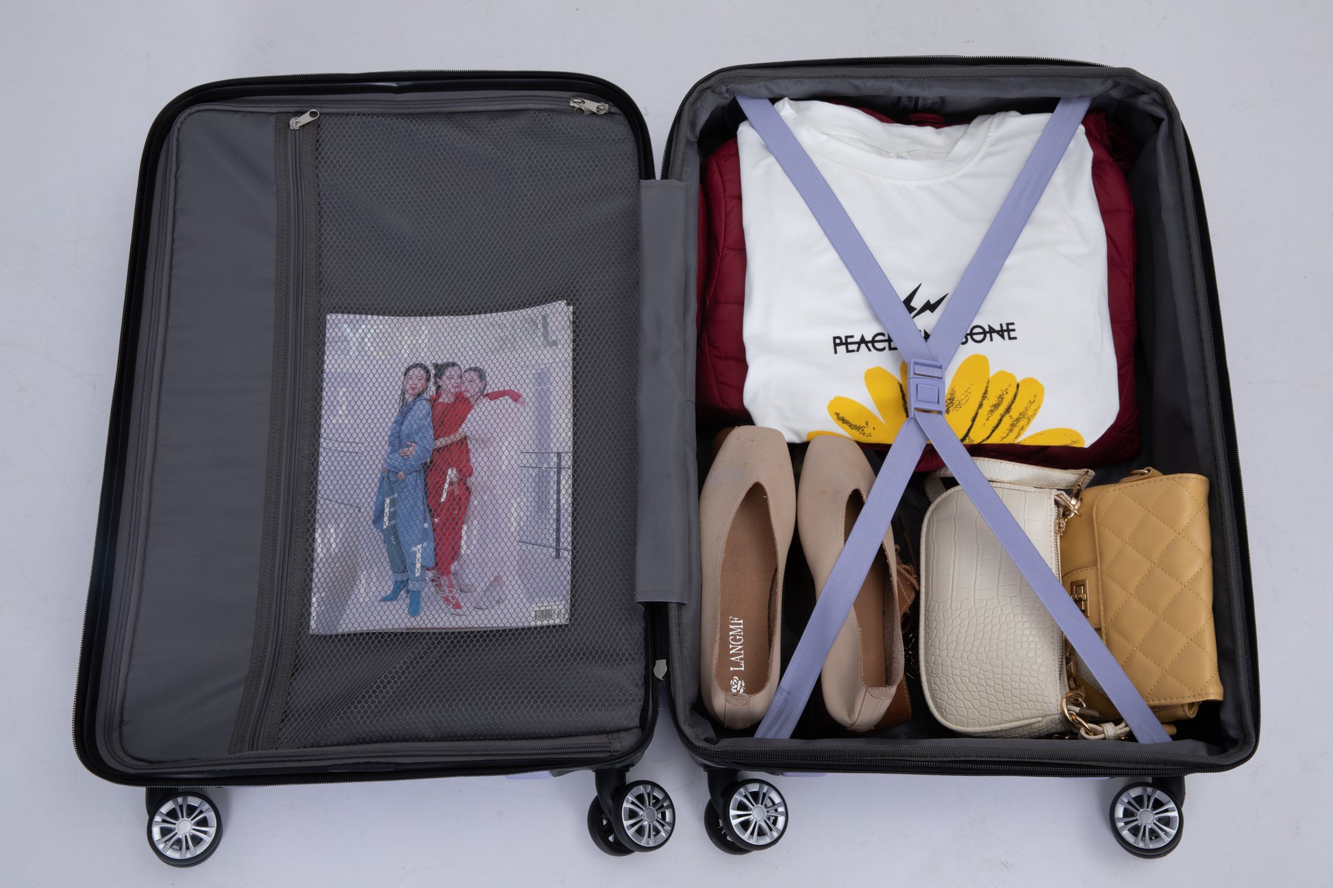 - 360° Double spinner wheels: Mute, strong bearing, effortless maneuverability.