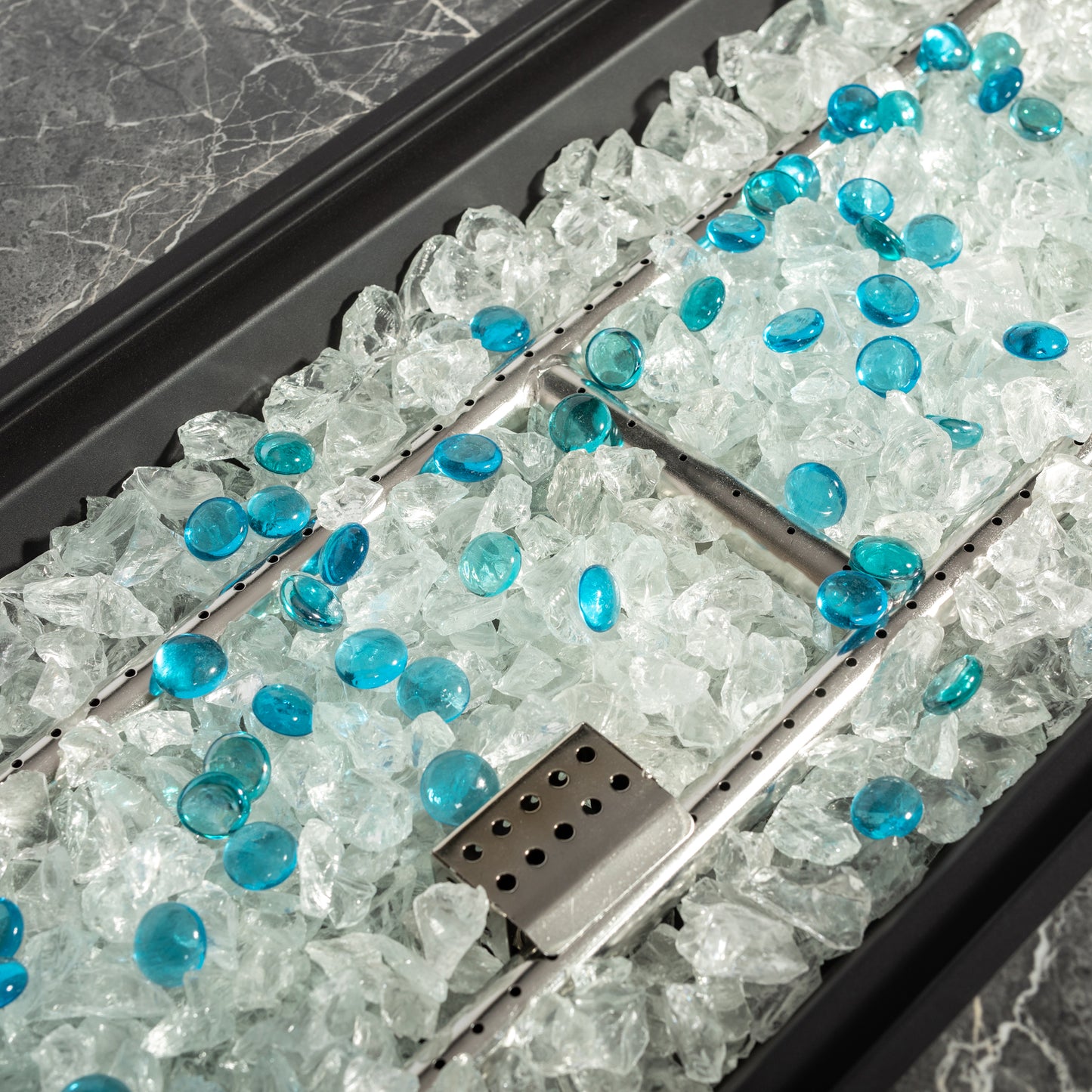 - 50000BTU Gas Fire Pit Table with Glass Rocks