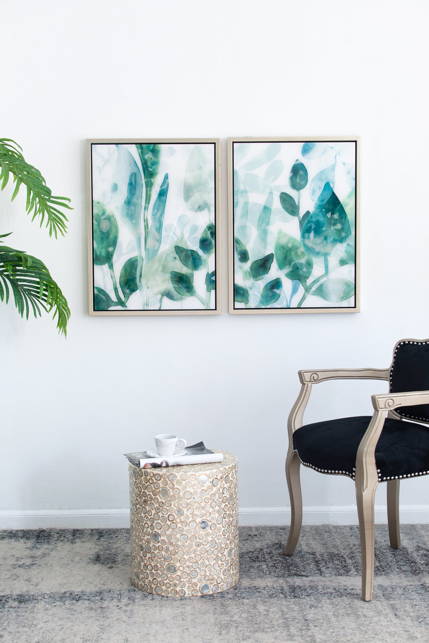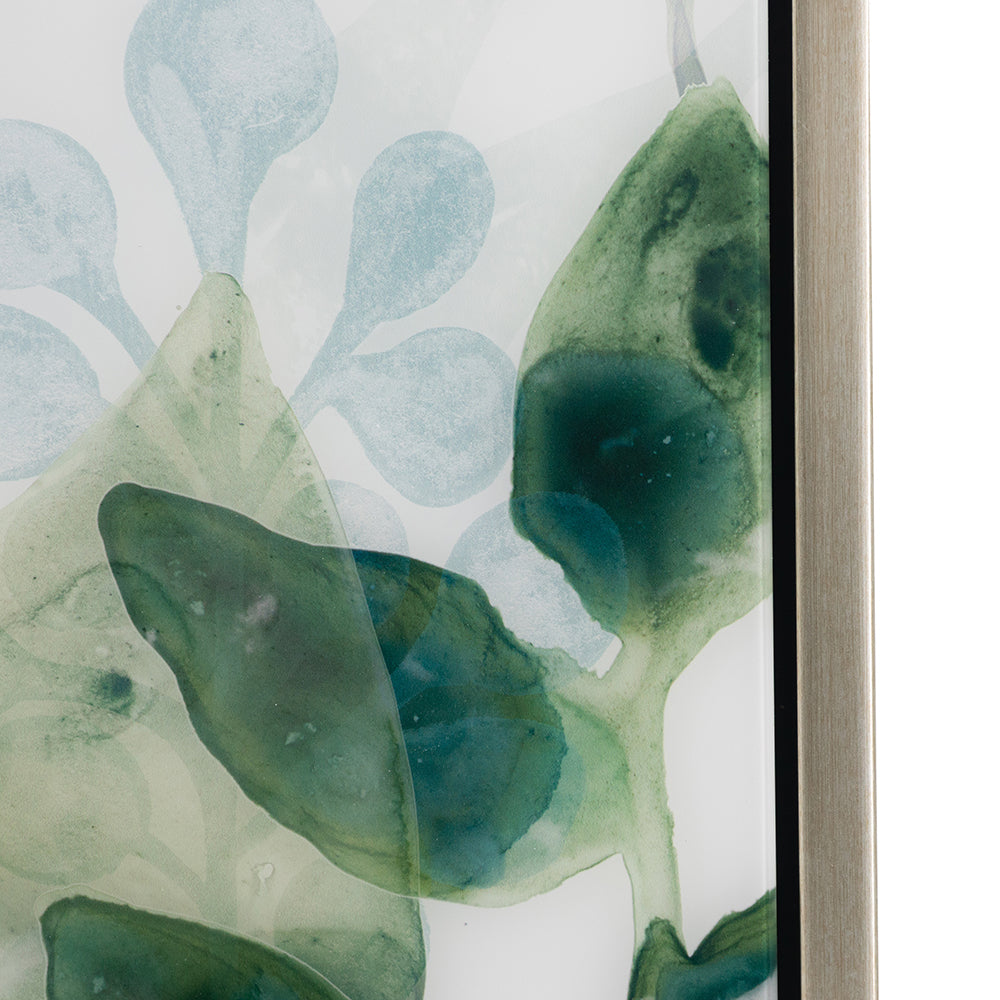 - Features watercolor images of leaves printed on clear acrylic and framed for a sophisticated look.