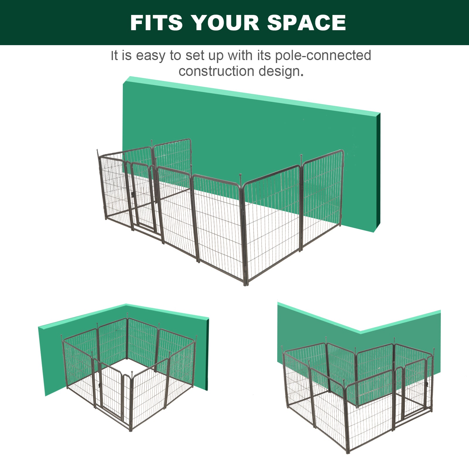 - 16 panels can be assembled into different shapes to needs and Each fence is 31.6"height. Any Combination is suitable for outdoor or indoor space.