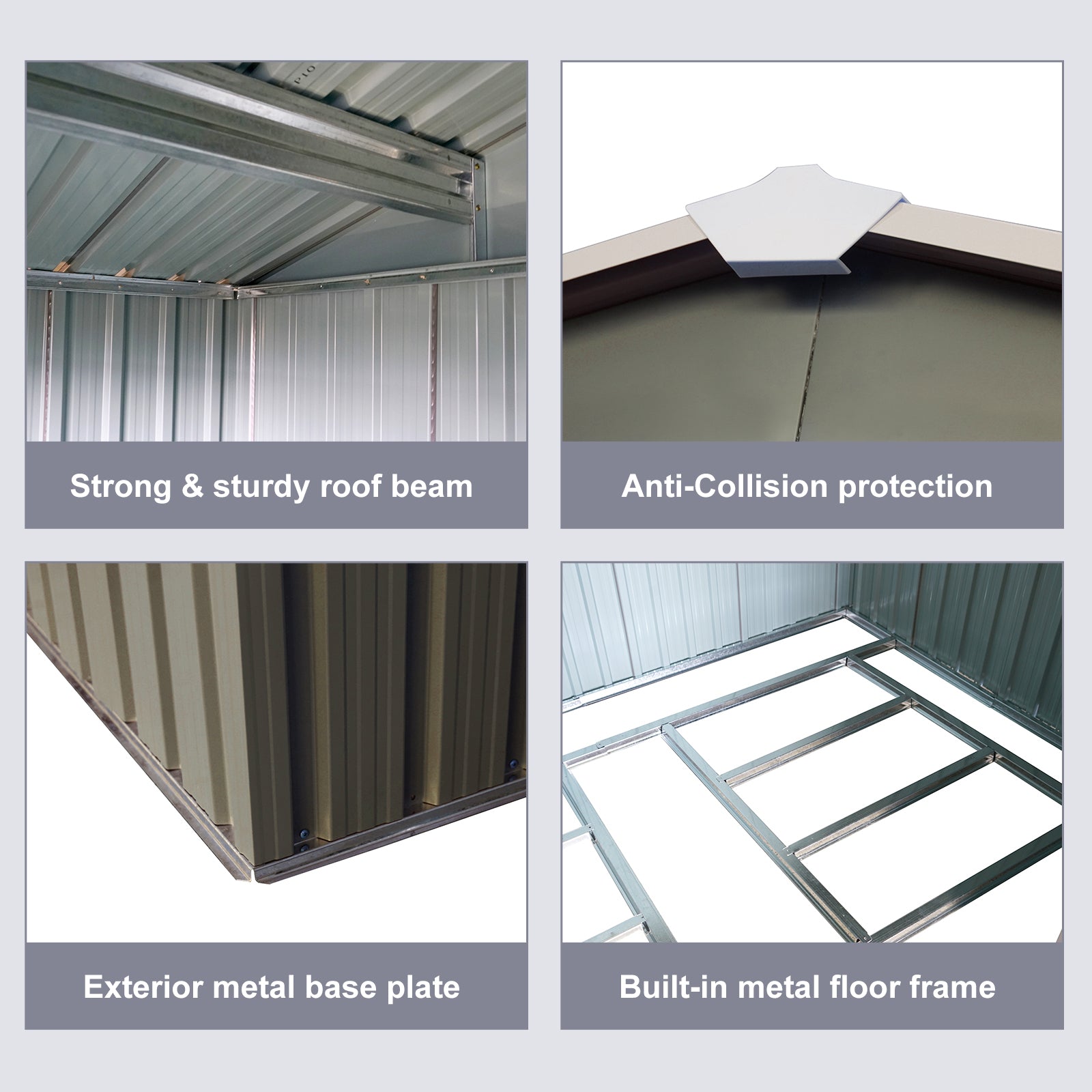- [Robust Construction] Nothing irks a garden hobbyist more than the sight of a collapsed shed. Luckily, this shed utilizes galvanized iron frames which greatly increase the overall sturdiness. On top of that, the galvanized steel panels, coated with eco-friendly painting, can endure harsh weather for at least 6 years.
