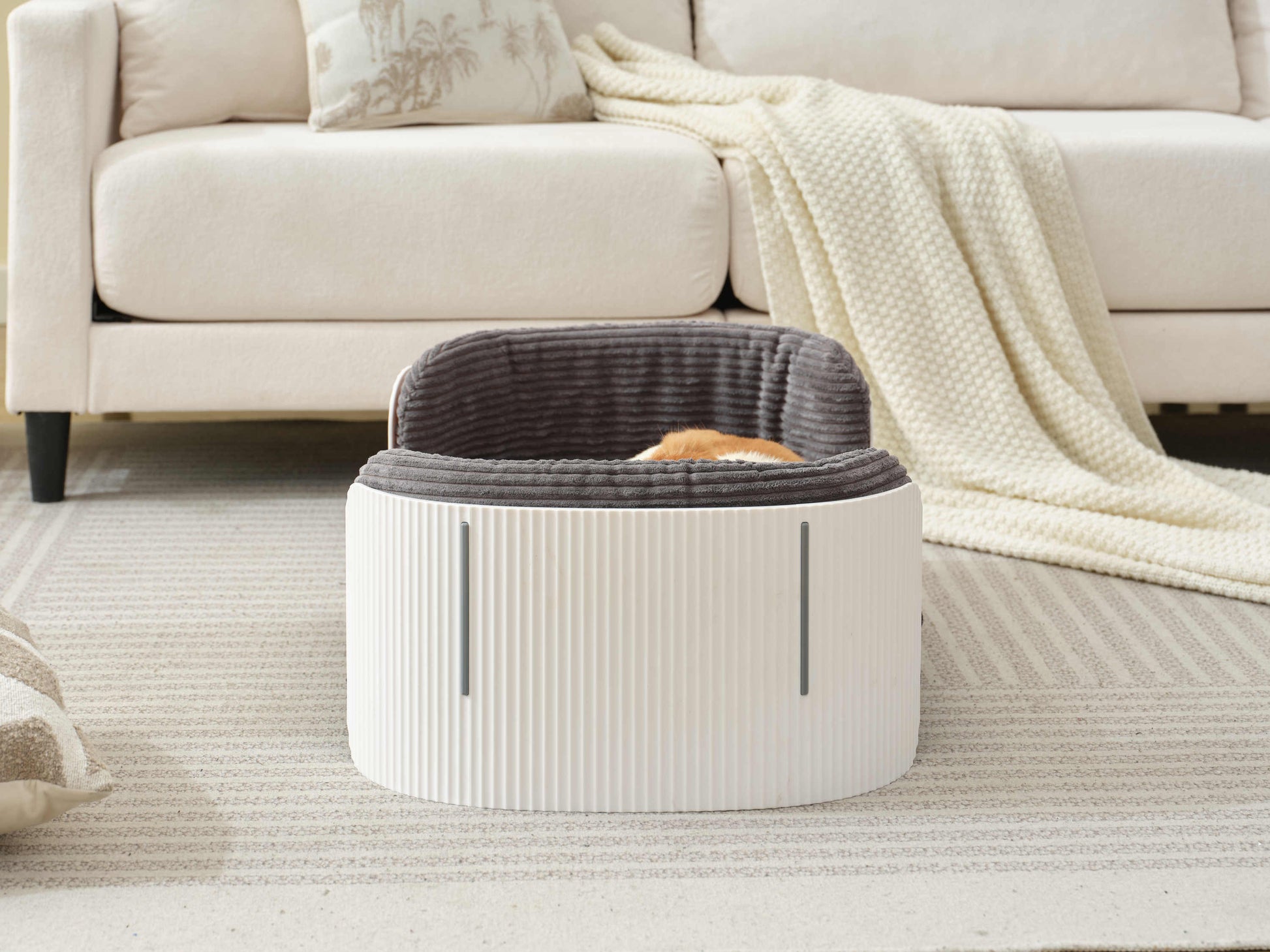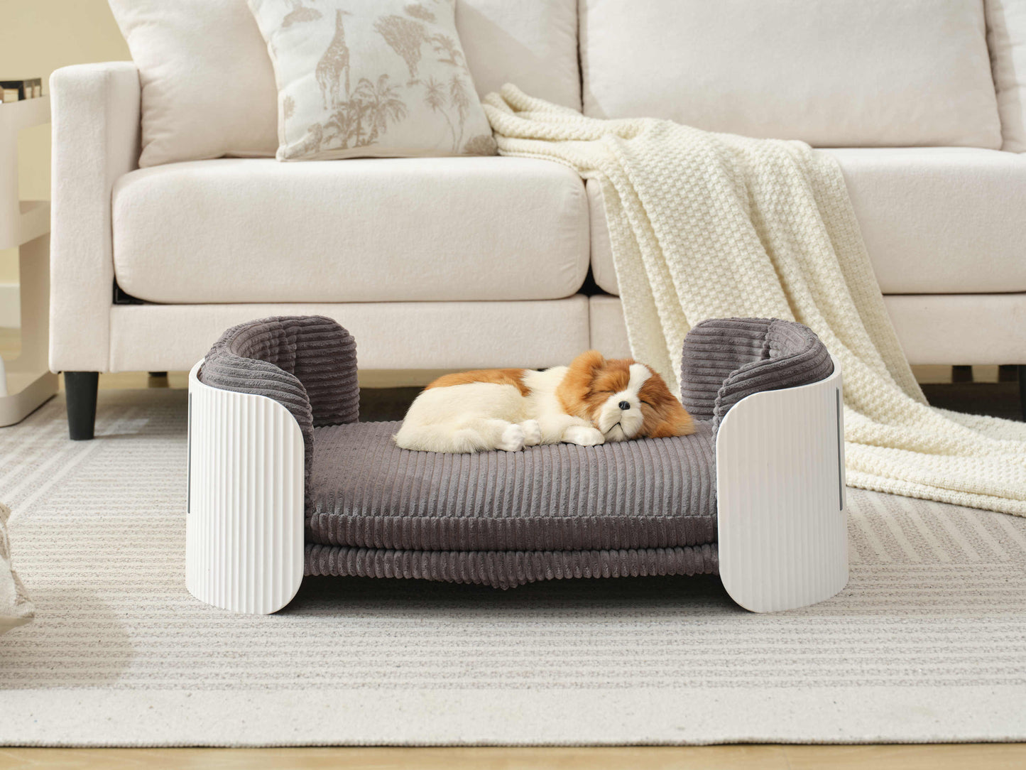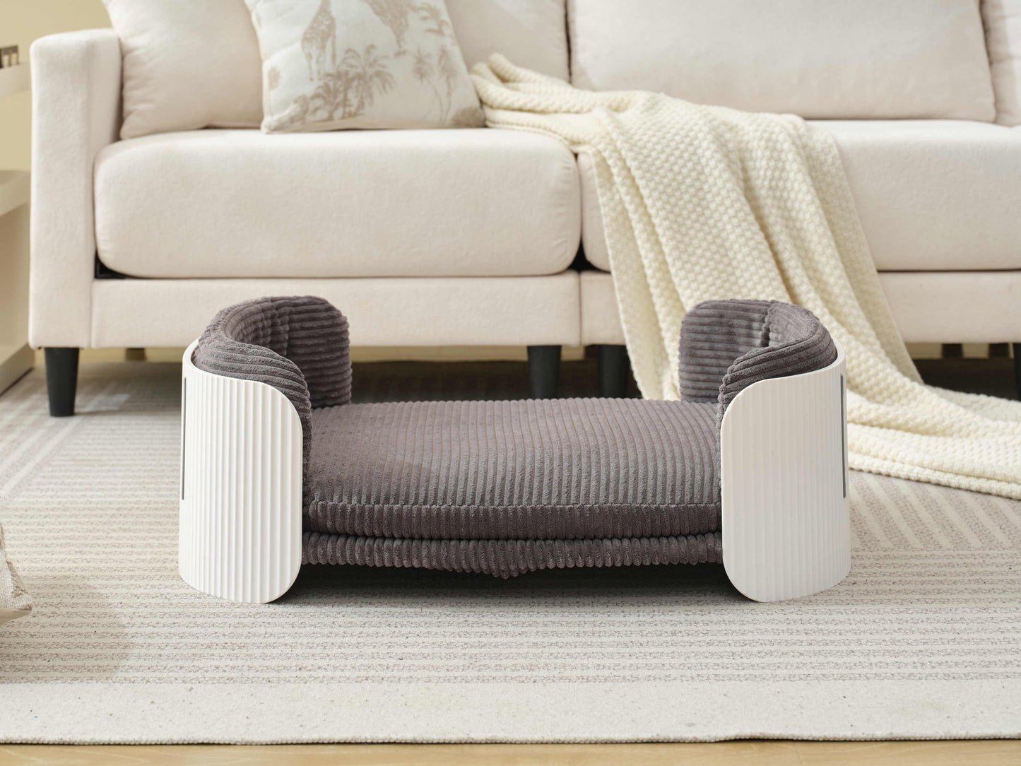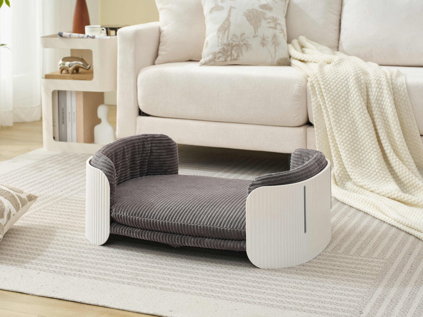 Scandinavian style Cat Couch Bed, Pet Sofa for Indoor Cats PP Indoor Pet Furniture Elevated Cat Beds with Removable Mattress Cover Suitable for Kitty, Puppy or Small Animal Brand Design White Grey