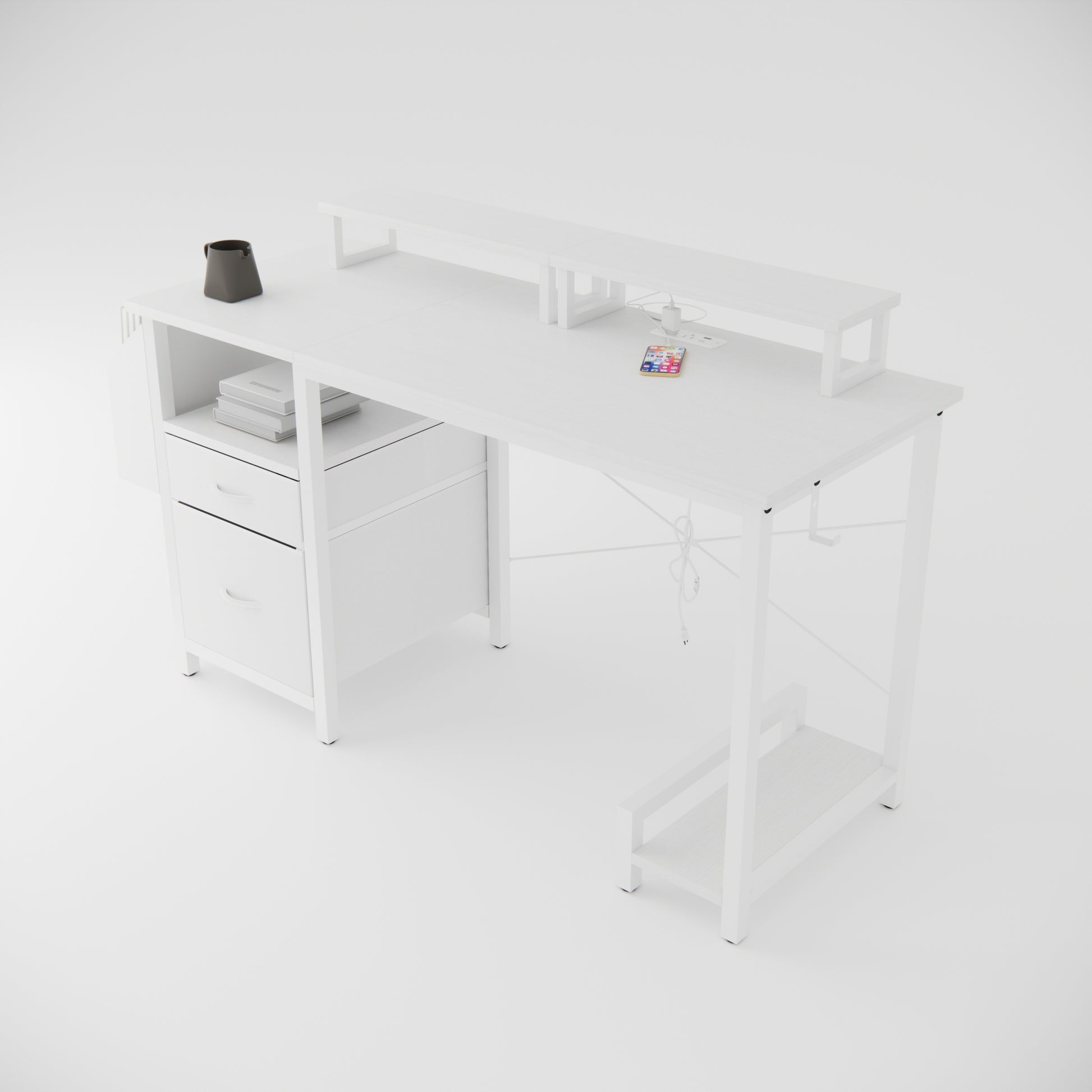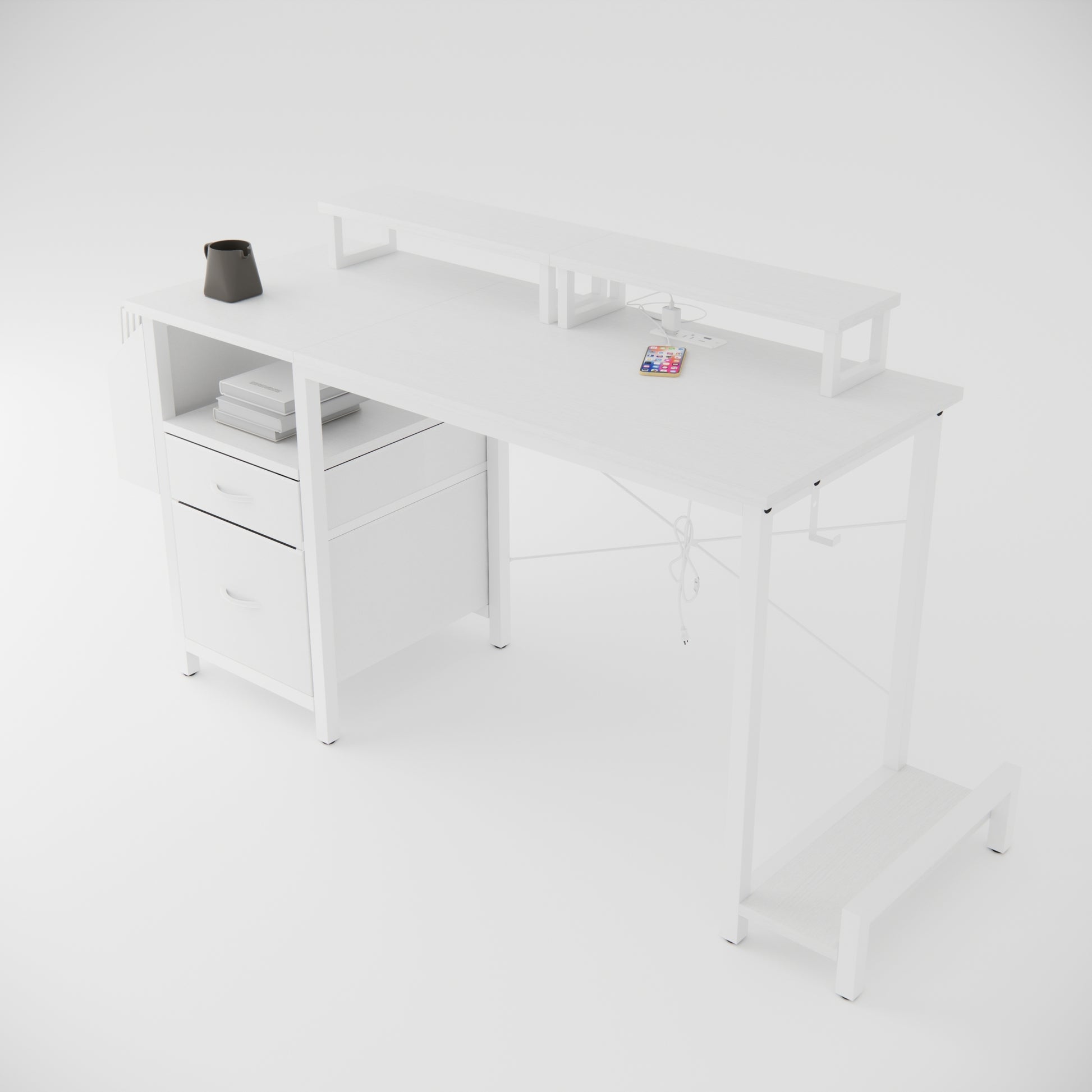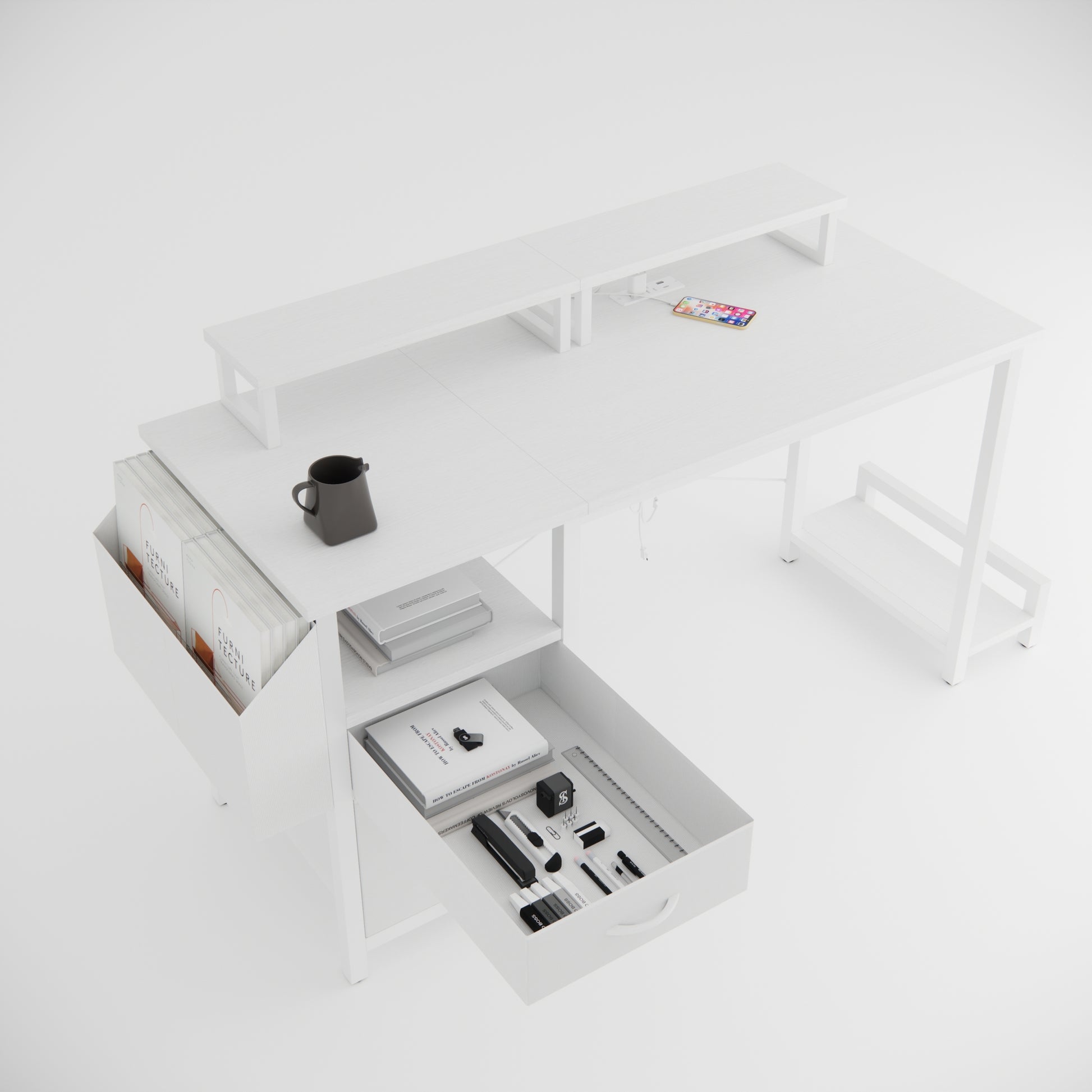 47"office desk with power outlet,2 Monitor Stands,2 drawers,Side Pocket,Easy to Assemble,Frame stability Reversible,use for home desk, computer desk, game table,White