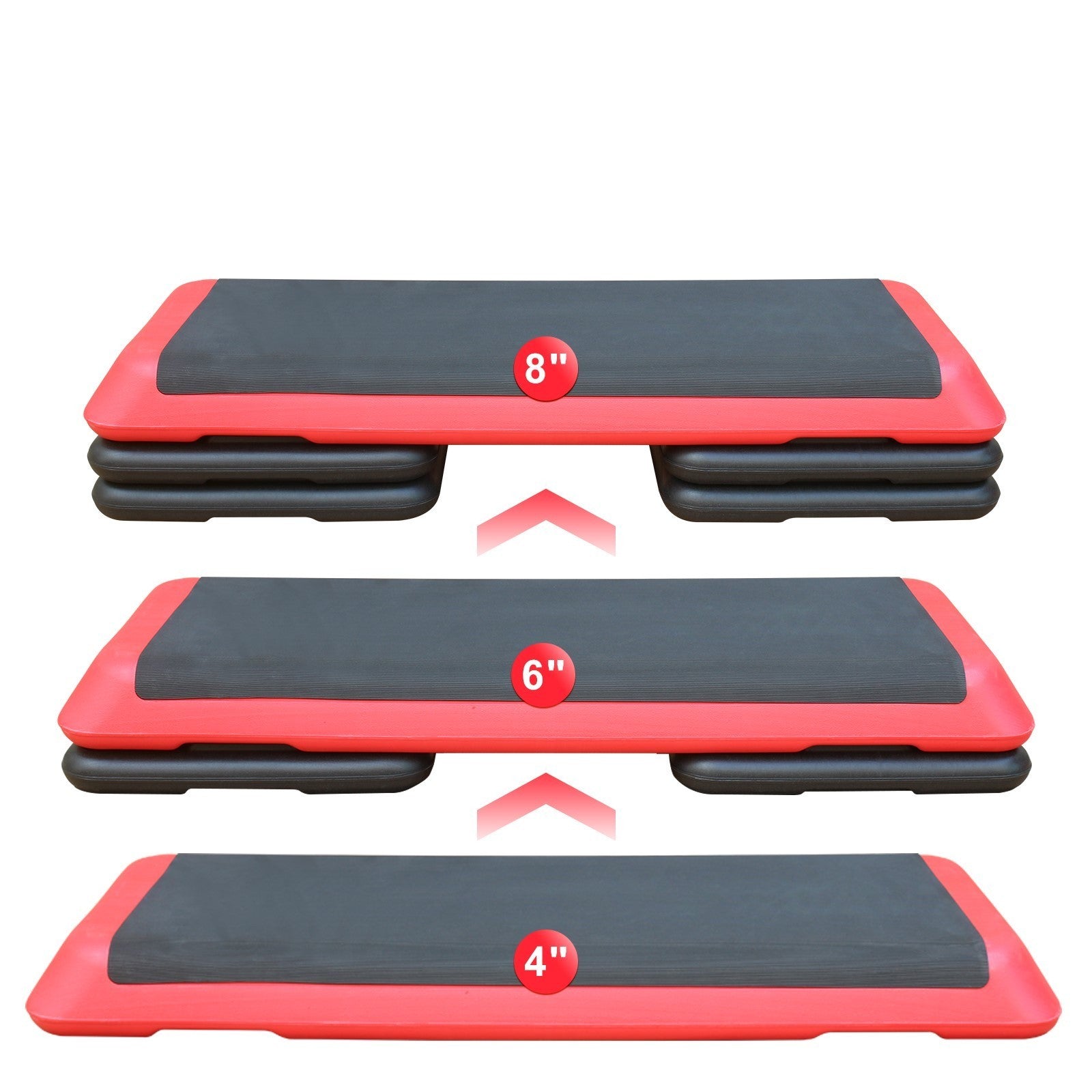 Adjustable Aerobic Step Workout Step with 4 Risers Fitness & Exercise Platform Trainer Red