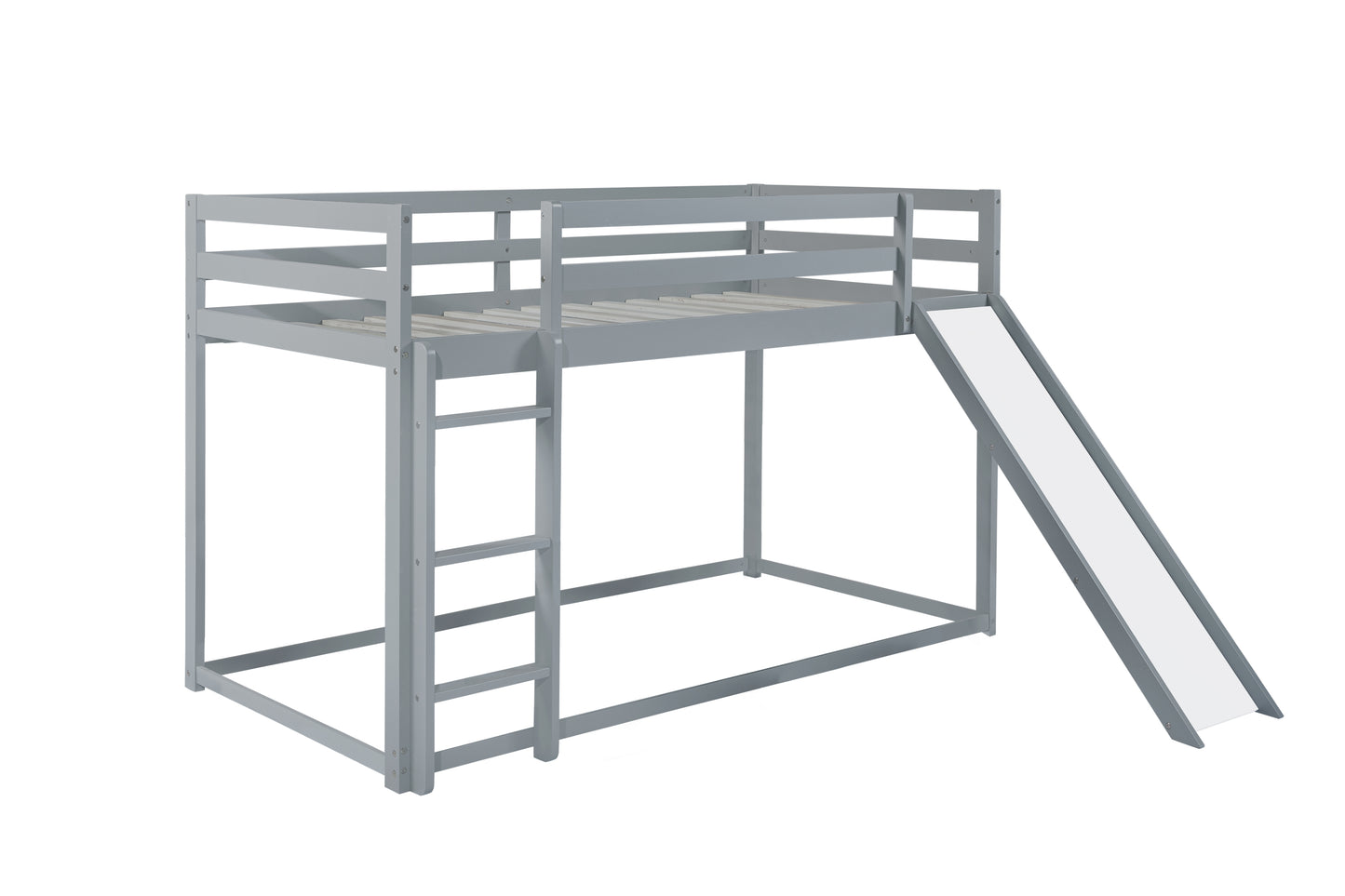 - #1 [Unique Bunk Bed with Slide]The unique feature of twin over twin floor bunk offers two individual pleasant, spacious rooms of upper twin bed and floor twin bed with guardrails. The delayering of the bunk provides minimal partner disturbance and perfect comfortable environment. Moreover, there is a slide with a smooth sliding panel and side protection that guides the motion smoothly and safely.