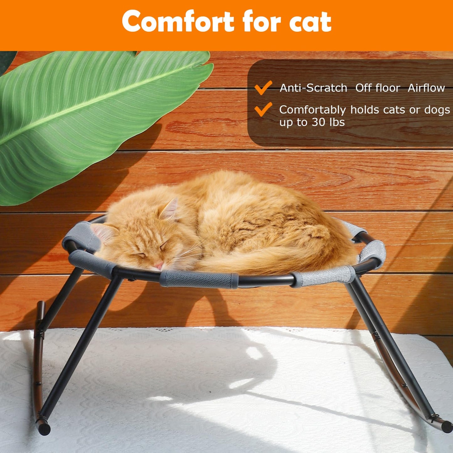 - STABLE DURABLE RAISED PET COT: The elevated dog bed is constructed with a sturdy metal frame that making it strong and durable. It features a sunken design to offer a comfortable sense for your dog or cat to sleep.