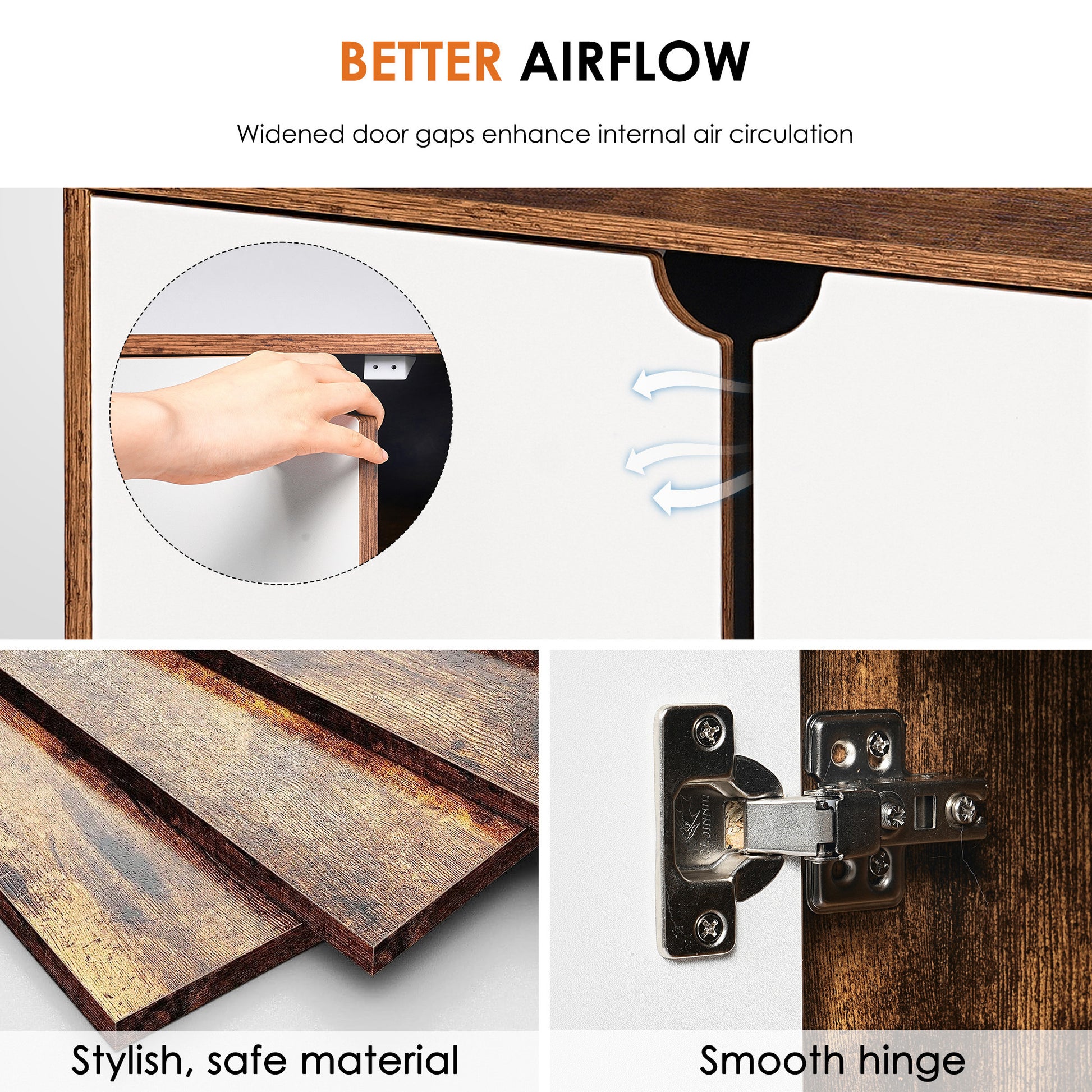 - Clean space: The entrance and exit have a litter leakage mat to prevent the litter from being carried out with the cat. Furniture cabinet design better hide the cat litter box, different from the general furniture cabinet door panel, specially designed to increase the door gap, more conducive to the flow of internal air, so that your home space to clean and comfortable.
