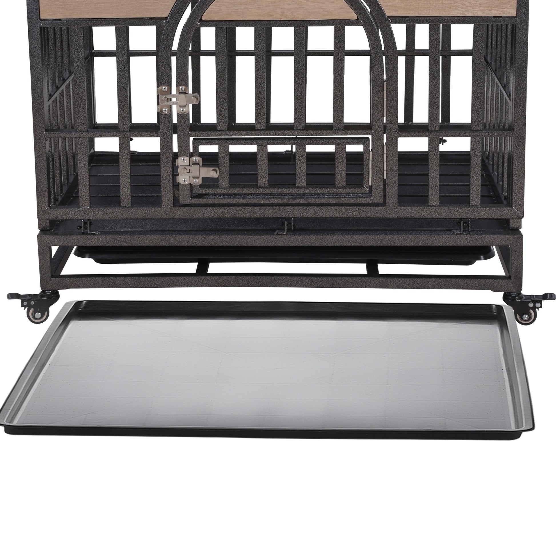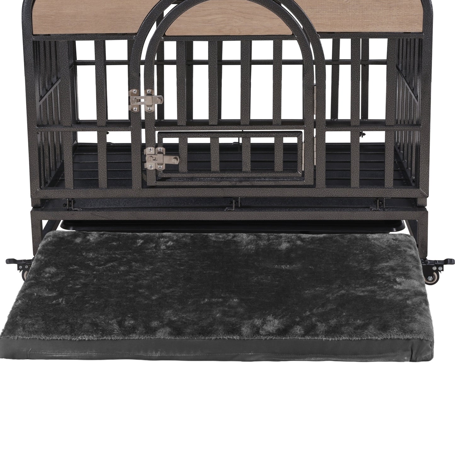 37in Heavy Duty Dog Crate, Furniture Style Dog Crate with Removable Trays and Wheels for High Anxiety Dogs