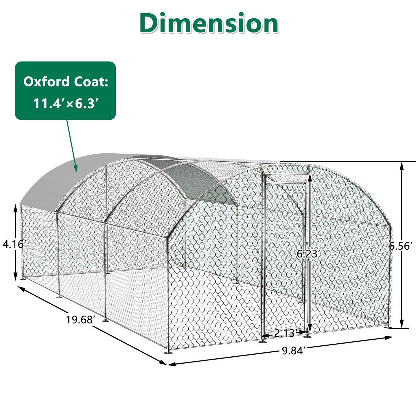 Large Chicken Coop Metal Chicken Run with Waterproof and Anti-UV Cover, Dome Shaped Walk-in Fence Cage Hen House for Outdoor and Yard Farm Use, 1" Tube Diameter, 9.84' x 19.68' x 6.56'