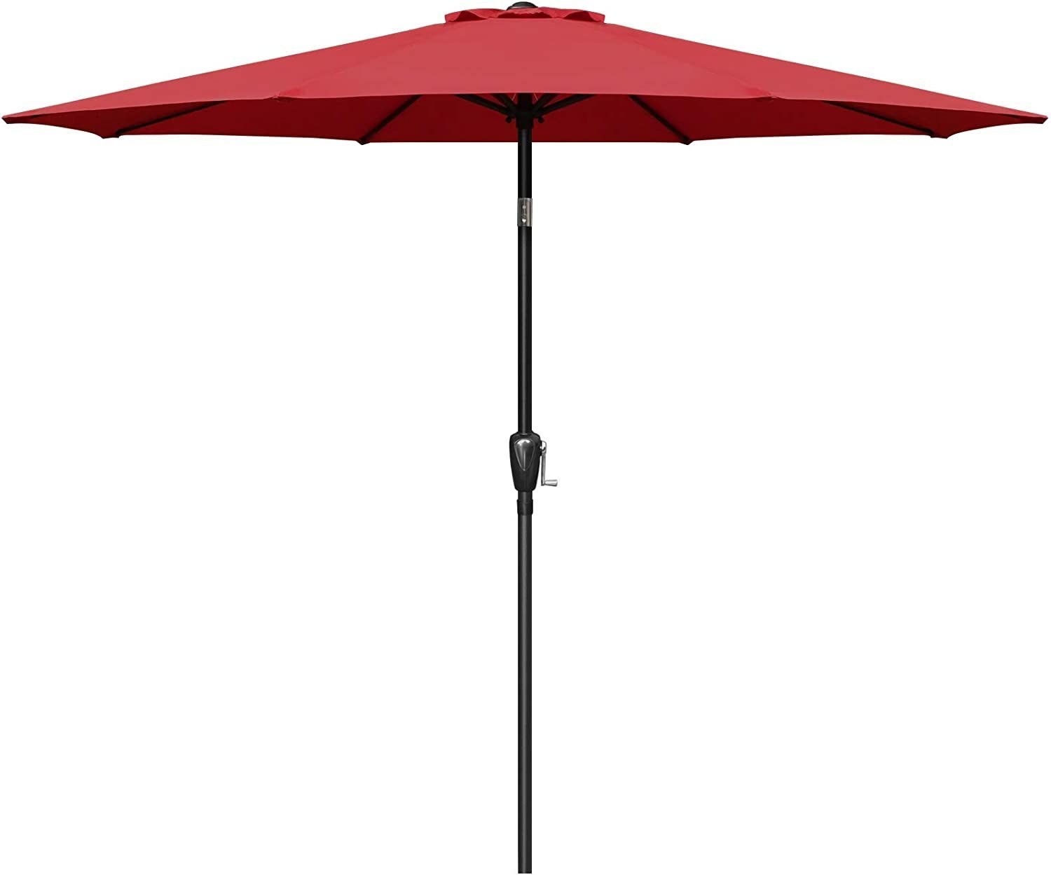 Simple Deluxe 9ft Outdoor Market Table Patio Umbrella with Button Tilt, Crank and 8 Sturdy Ribs for Garden, Red